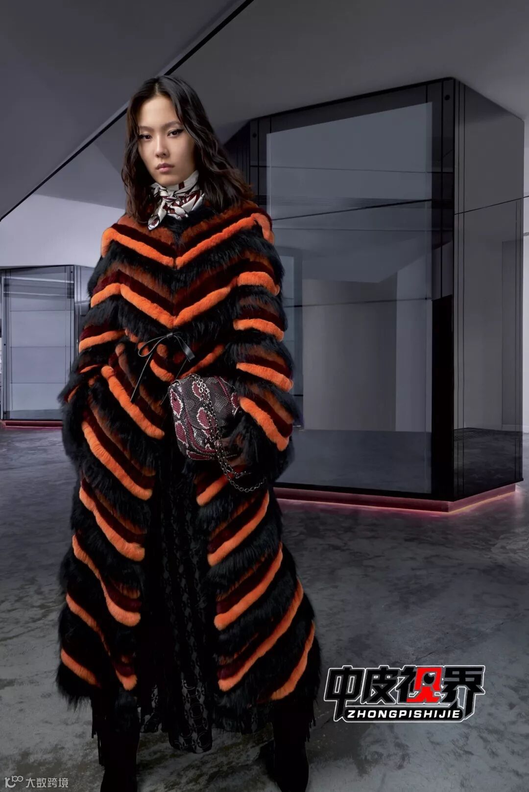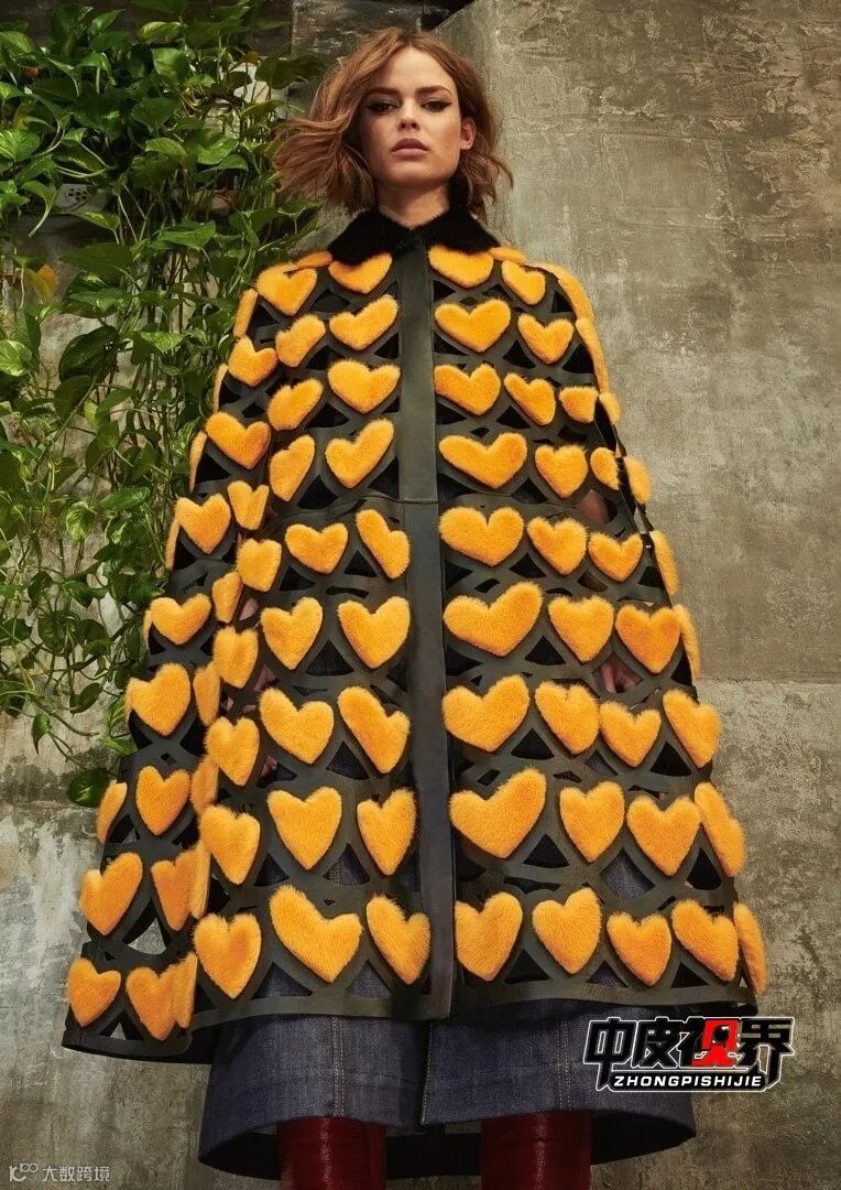 毛皮可以和多种材料进行结合使用,产生独特的外观效果,赋予毛皮设计更多的风格和灵感。大多与真丝面料、皮革、针织、蕾丝等材质相结合,形成一种美轮美奂的视觉效果,增添皮草的创造性和展现力。