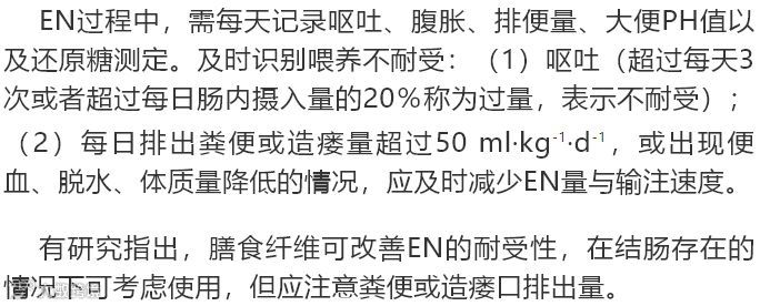 急性期。此阶段以PN为主,尽早开始EN,首要目标是稳定液体电解质平衡。在病情允许情况下,应尽早给予营养支持。EN以微量喂养开始,逐渐缓慢加量。术后早期往往伴随高胃泌素血症,需要进行抑酸治疗。肠道丢失量应额外补充液体和电解质溶液。