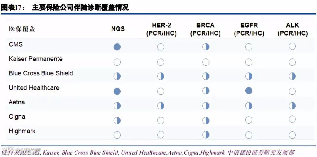 考虑到基于NGS的伴随诊断产品已纳入美国CMS报销范围,后续商保覆盖有望逐步加强,市场份额有望扩大。
