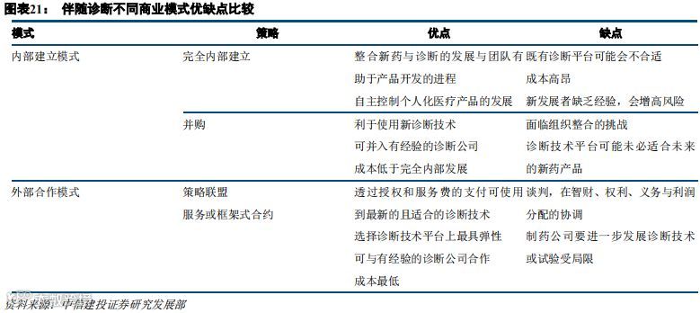伴随诊断的内部开发适用于在公司范围内拥有重要诊断部门的药物开发者,一个众所周知的例子是罗氏,它通过和罗氏诊断的研发合作对药品研发起到了重要作用。