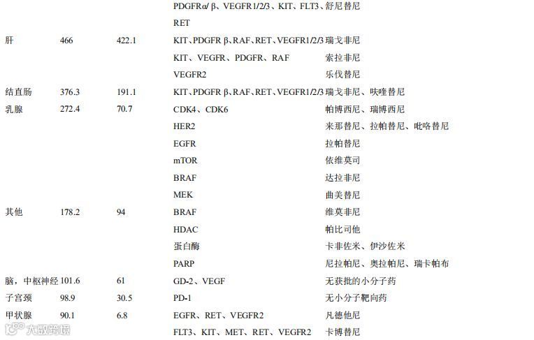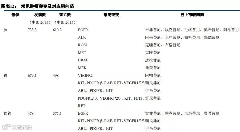 乳腺癌和肺癌是主要适应症,与靶向治疗成熟程度和患者人群高度相关
