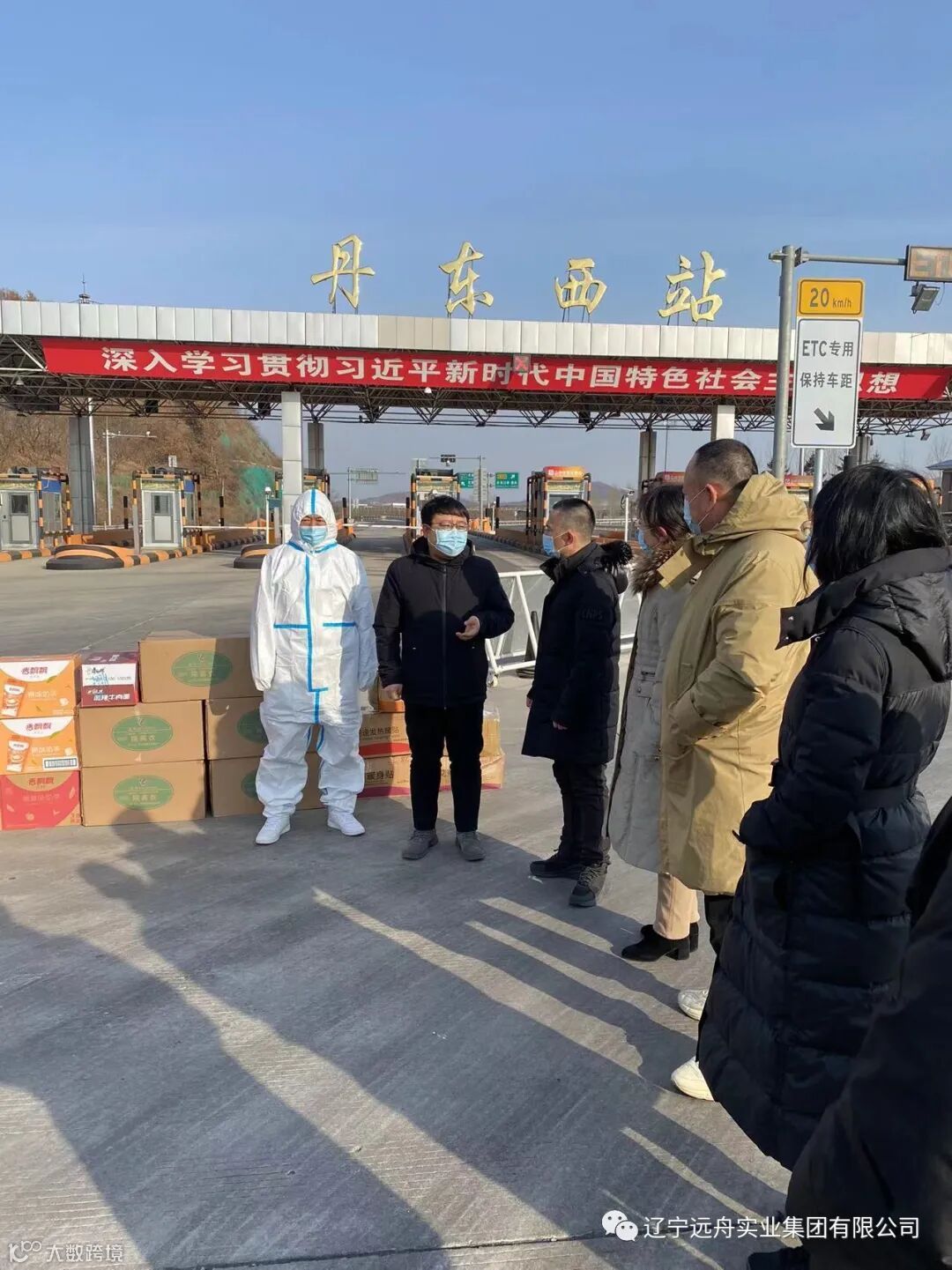 2022年1月18日,辽宁远舟实业集团有限公司参与了区工商联会同区红十字会共同组织的到高速丹东西站慰问坚守在防疫一线的工作人员,为他们送去了防护服,矿泉水,方便面,暖宝贴等慰问品,对防疫的工作人员表达了最诚挚的问候。