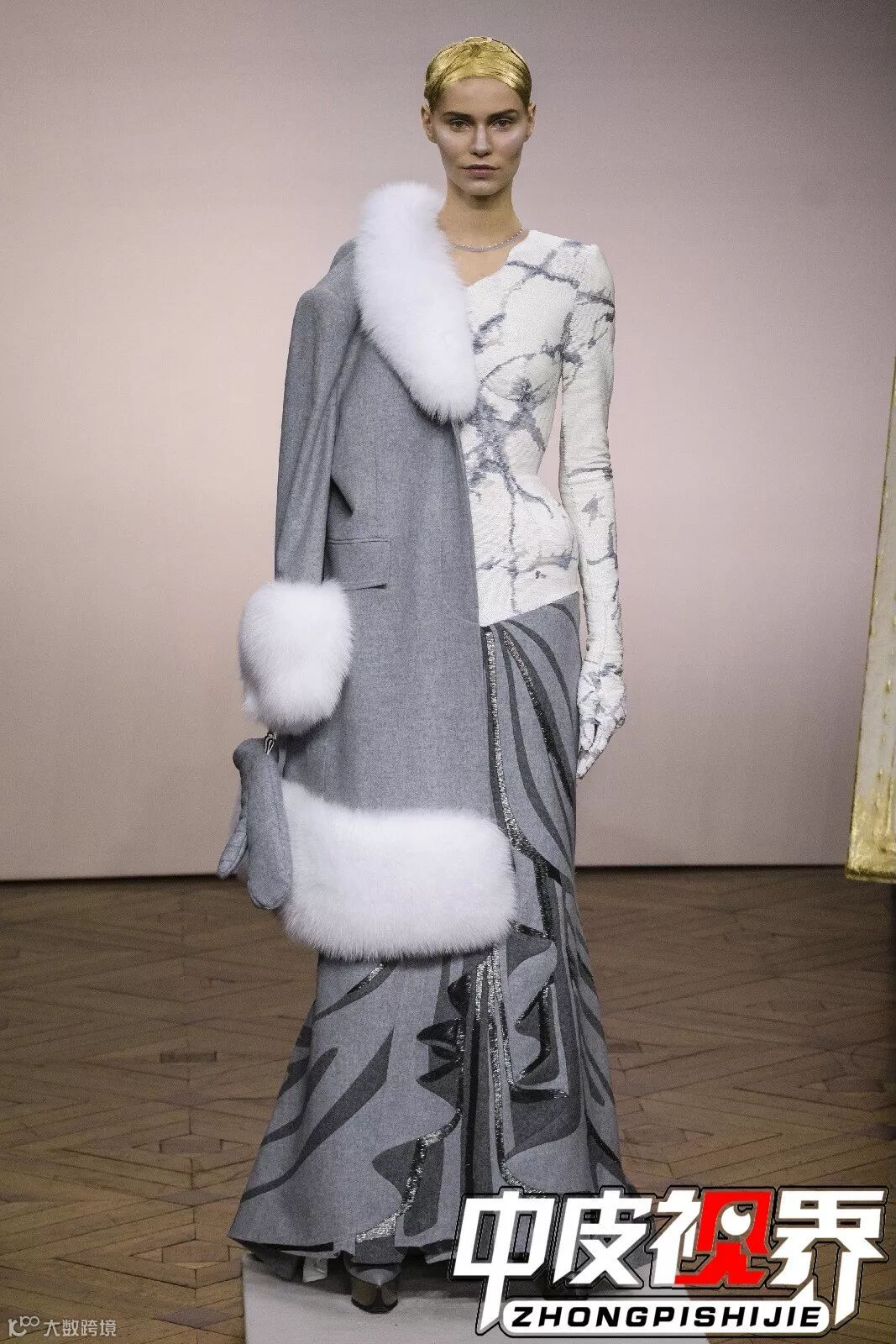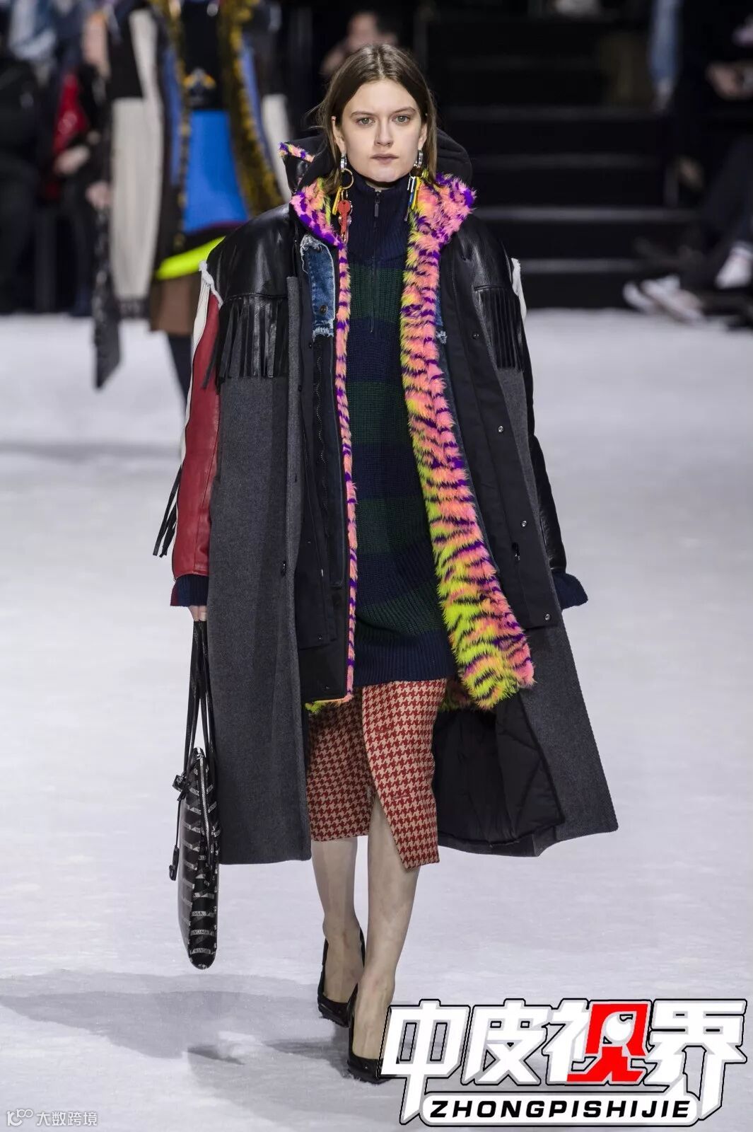结合不同种类的皮草搭配一起,如较短的水貂毛与较长的狐狸毛等相拼接,打破单个皮草的沉闷感。