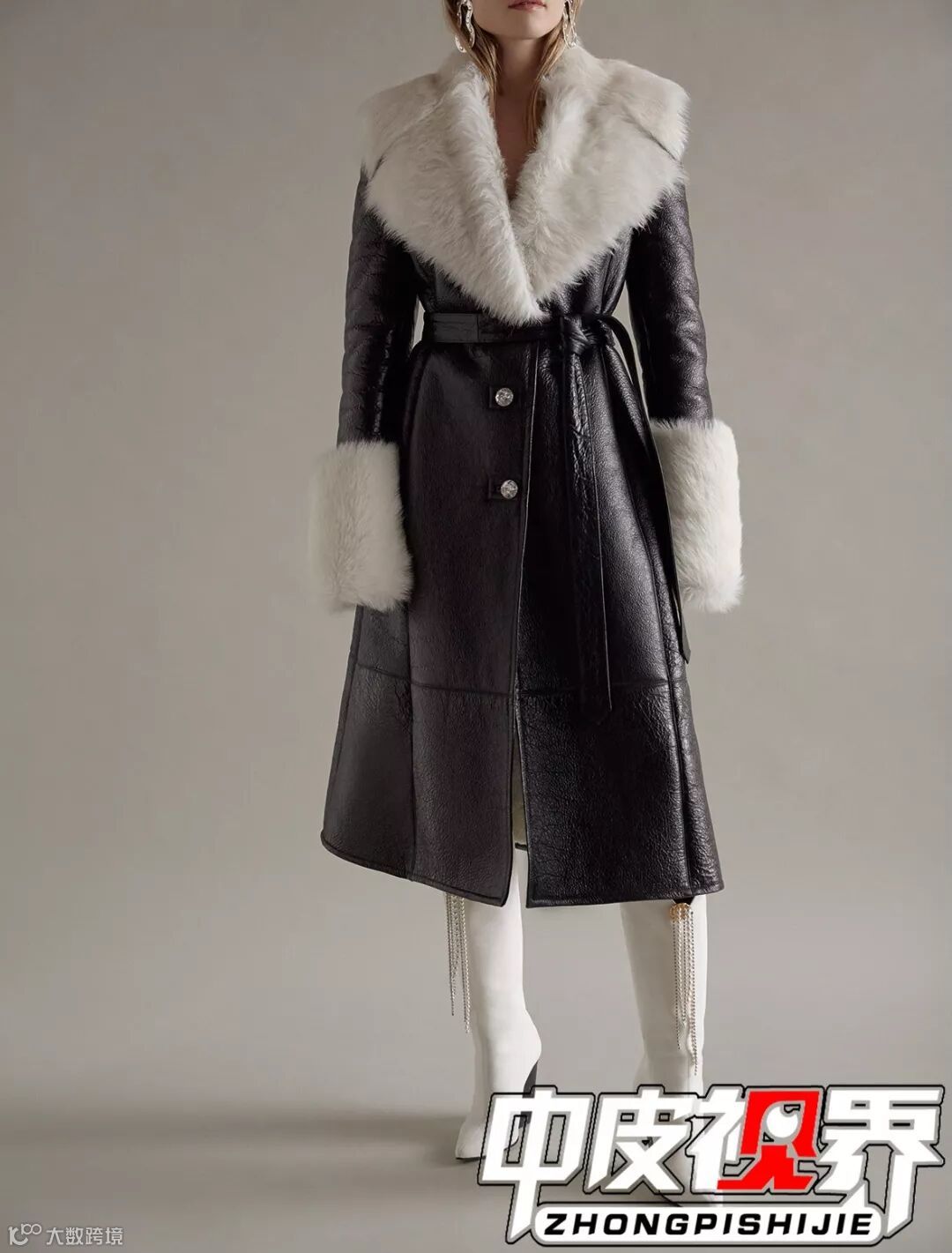 柔软轻薄的绵羊皮与皮草相结合,大气时尚,气场十足。毛与皮的拼接设计也很大程度上避免了违和感却又可以凹出体积感十足的震场设计。