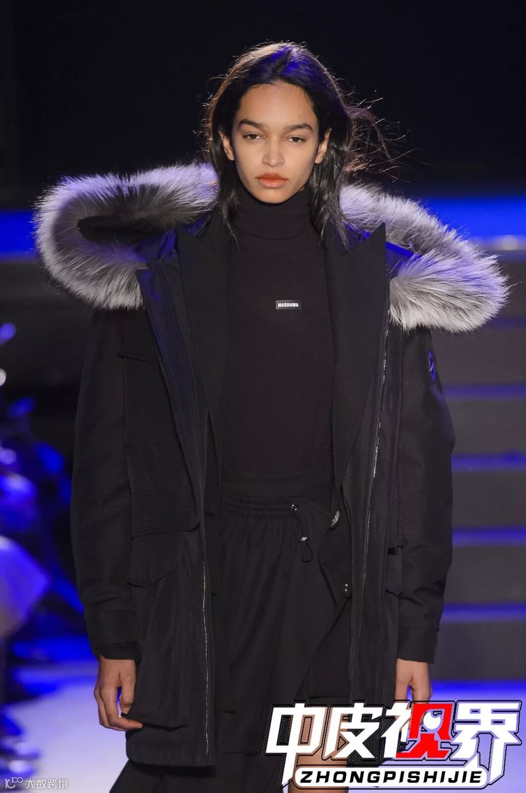 毛皮材质与面料材质的混搭设计,衣面起伏感较强,混搭材质的选择可以更好地展现设计的体积感,表现服装层次,打破单调的平面外套。