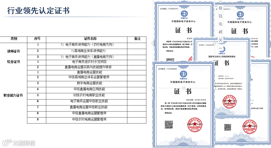 职业认证:通过教学实训,学员可考取“直播电商运营技能”等国家认证证书,打通技能学习到就业认证全链条。