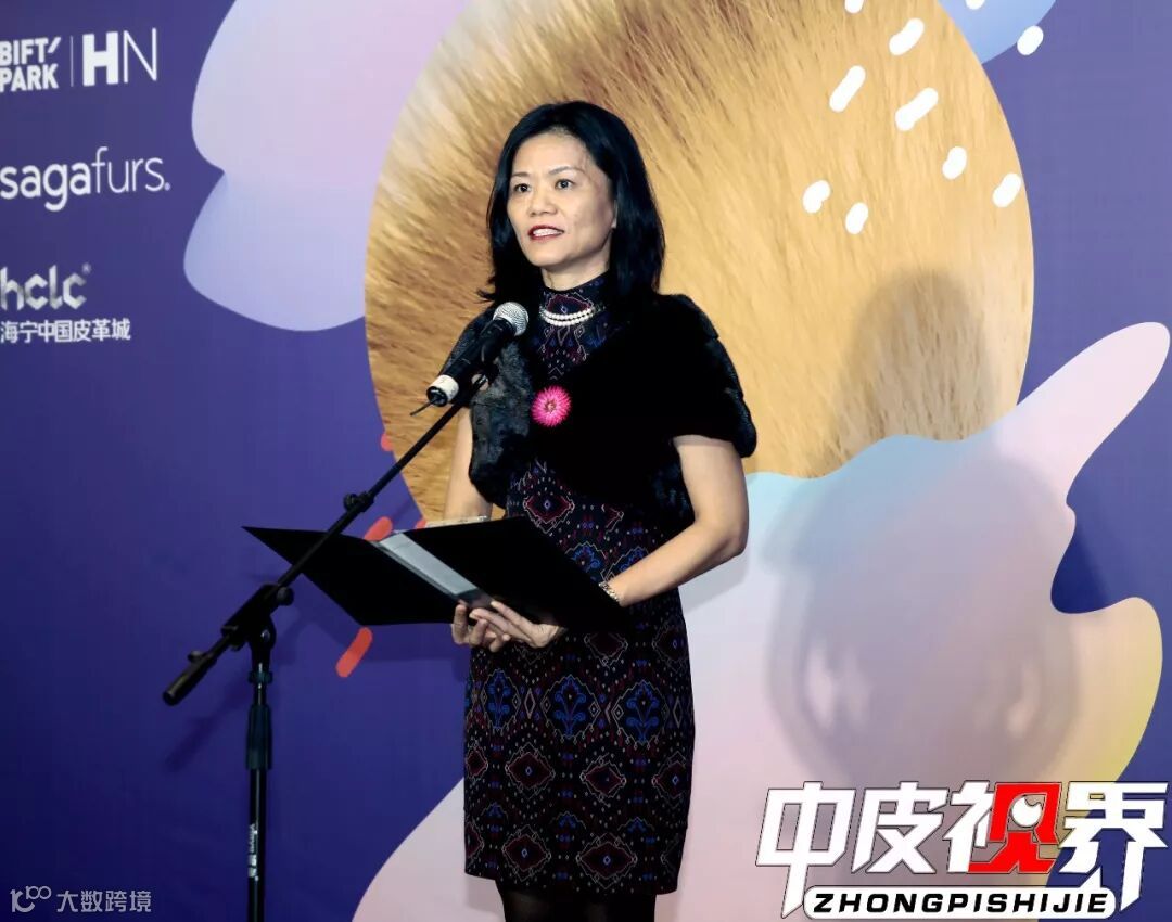 海宁皮革城股份有限公司总经理钱娟萍发表贺词