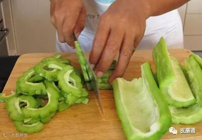 4、苦瓜入锅焯水至断生,然后迅速过凉水或泡入冰水中。