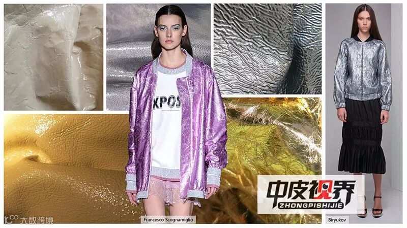中性色和金属色的褶皱漆皮在19春夏盛行,为光滑表面增添层次感。仿皱纹和起皱手法混合了不同的效果。闪光和镜面处理都适用,诠释未来感和复古的70/80年代格调。
