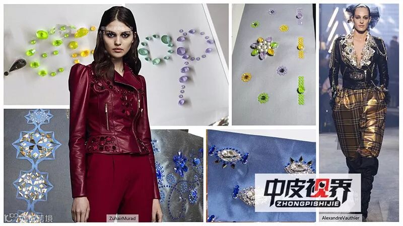 多个烫钻的组合形成精致的图案形状装饰在皮草单品上,不论是局部使用还是满身覆盖都能凸显精致高贵的特点。