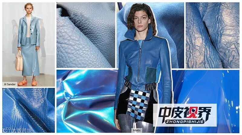 明亮而醒目的天蓝色在展会上脱颖而出,为2019春夏系列带来活力感。粉蓝色、德勒斯登蓝、布蓝色、迷幻蓝和天空蓝等色彩出现在很多皮革和非皮革材质上,为大象皮、漆皮、尼龙和牛巴革打造出动感十足的夏日造型。