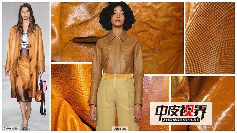 天然而醒目的珍稀皮革在男女装设计中不断流行。蛇皮和鳄鱼皮用于打造醒目华丽的图案。小范围布局令个性造型更显精致,肤色和闪亮表面仍然是重点。