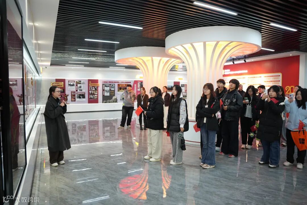 师生们首先参观了集团智慧党建展厅:近距离观摩党建阵地建设、荣誉墙、红色文化长廊,了解企业“党建引领业务,业务反哺党建”的发展理念,聆听特色党建案例分享,详细了解如何以红色引擎驱动电商产业助力乡村振兴。
