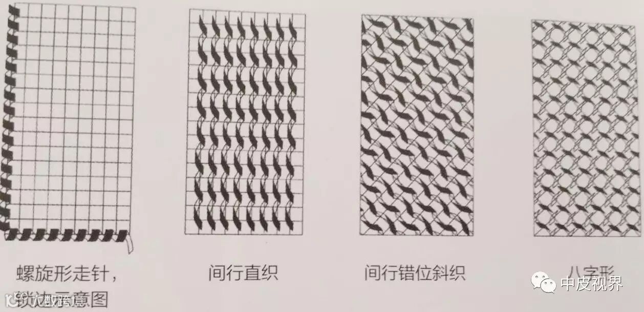 传统的间行直织、八字形、口字形、菱形、波浪形等编制方法在当代皮毛编织设计中始终扮演着重要的角色。