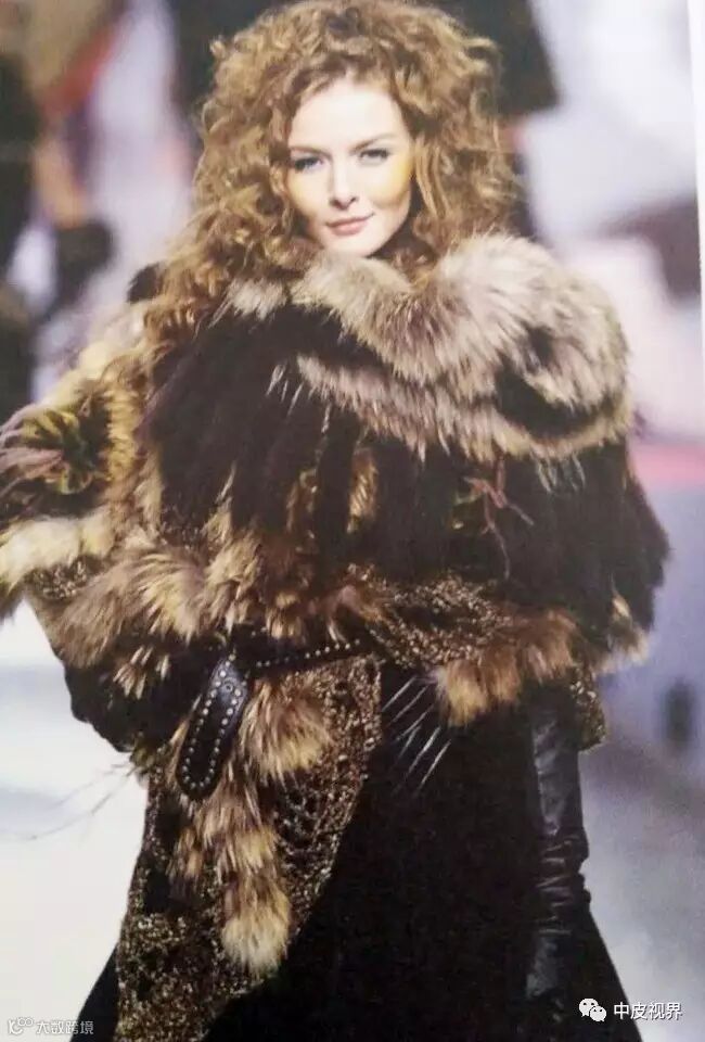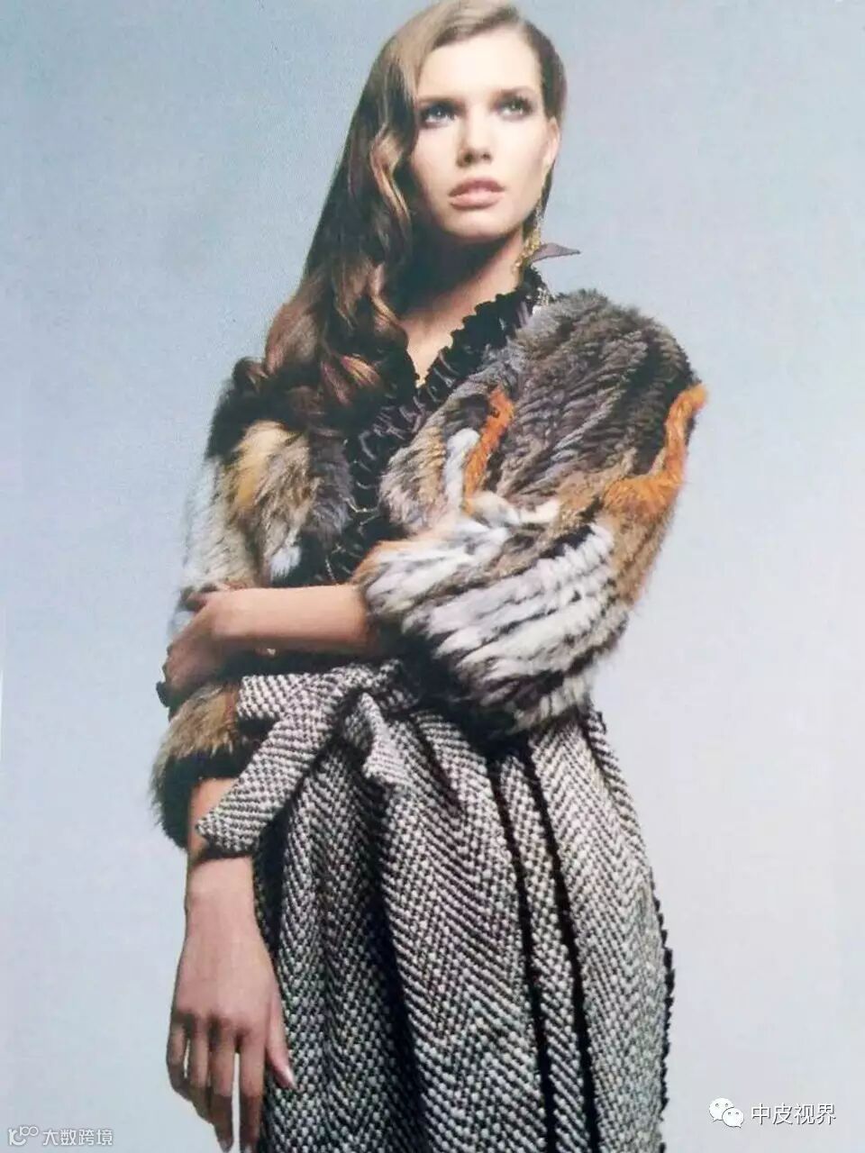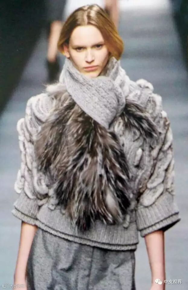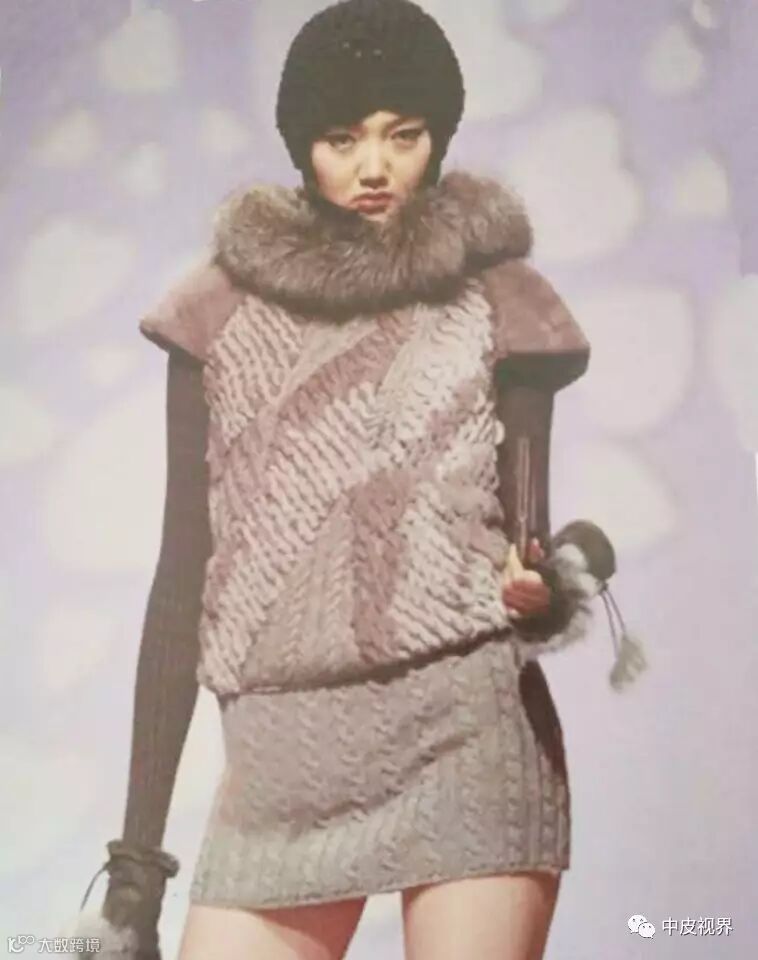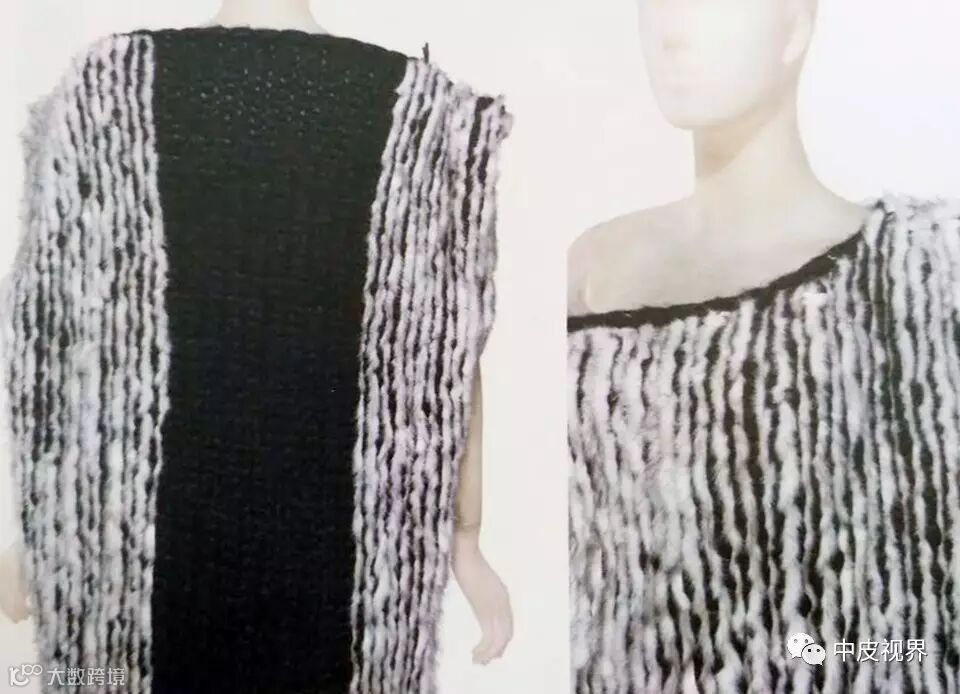 毛皮编织工艺早在20世纪80年代初期就已经开始应用了,它不同于其他的编织工艺,是在一块网布上将毛皮条穿插交织而成。这种方法既轻巧,有改变了皮毛厚重的外观效果,其柔软的双面性非常适合做围巾,披肩,外套等服装服饰品。随着后现代思潮以及解构主义的表现手法的渗透,当代的皮毛编织服饰颠覆了传统的皮毛服饰的概念,皮毛材料的面貌也在传统加工工艺的基础上衍生出更加丰富的形象。