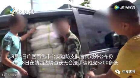 9月8日,广西百色市公安边防支队对外公布称,于8月18日在靖西边境查获无合法手续貂皮5200余张,整车貂皮摆满了一地。