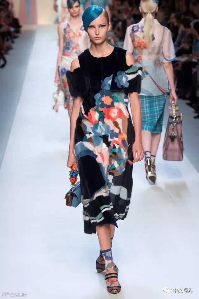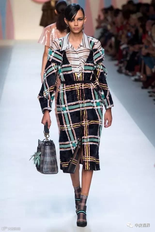 FENDI2018春夏系列将设计重心放在品牌双F标识以及条纹拼接之上,来打造独有的品牌形象,时尚简约的运动夹克搭配经典配色,沉稳而不失活力。作为整个系列最大亮点,斯瓦卡拉的条纹拼接以及水貂结合透纱的格纹拼接让皮草轻盈飘逸之余,更是妙趣横生。