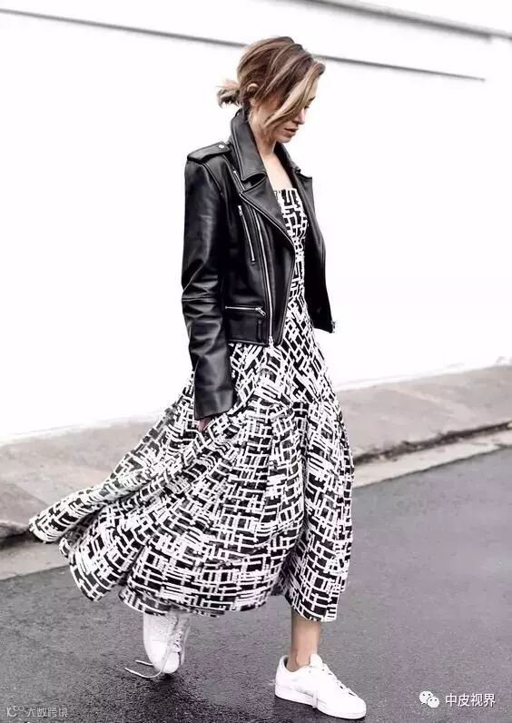 女孩子逛街最重要的是什么?当然是回头率啦!怎么样才能有更高的关注度,那当然是要搭配长裙。在一袭长裙带给你一丝仙气的同时皮衣又给你增添了一抹帅气。