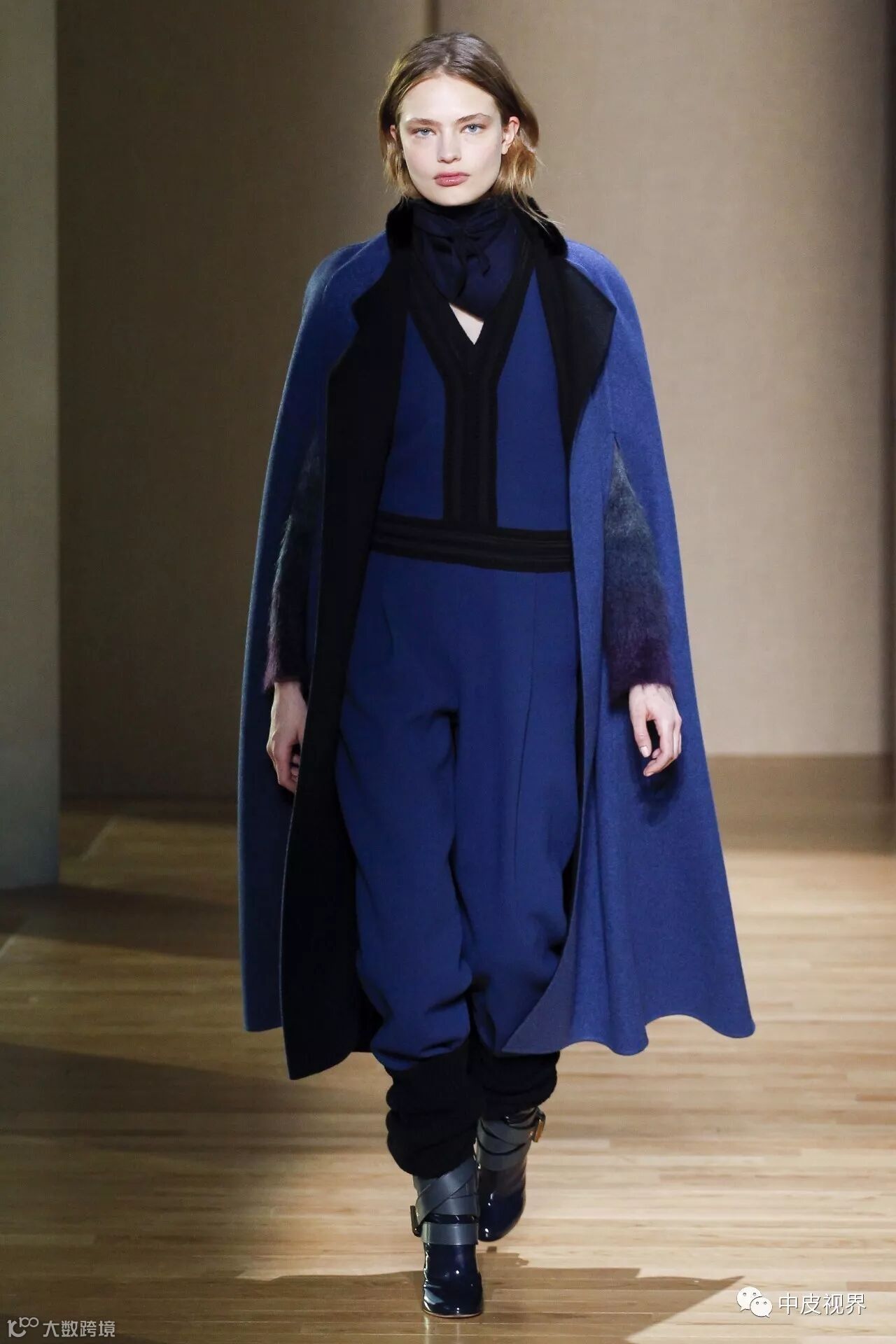 米白色呢子大衣,颜色淡雅柔和,款式精致简约,轻松穿出知性大方的气质,搭配藏蓝色波点连衣裙,柔美浪漫,还有几分文艺气息。