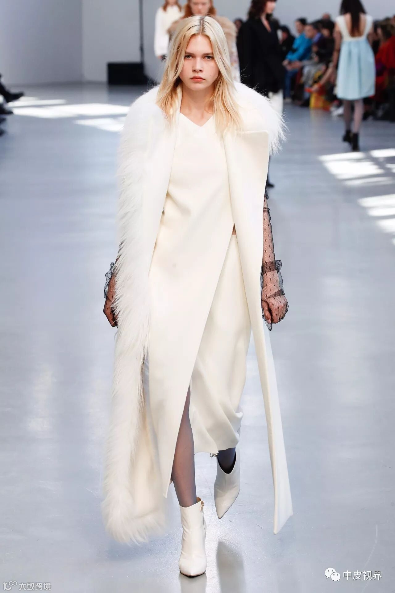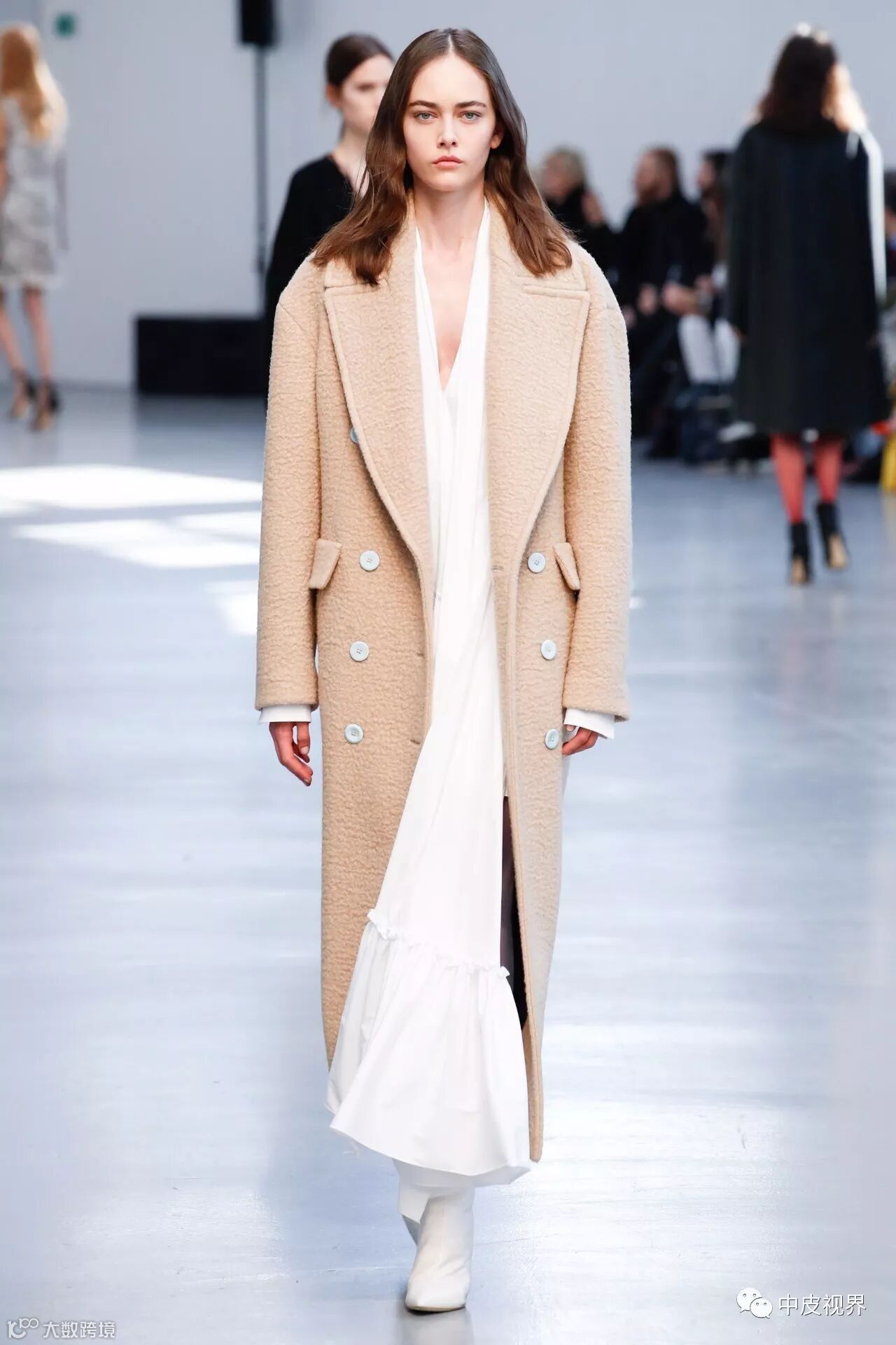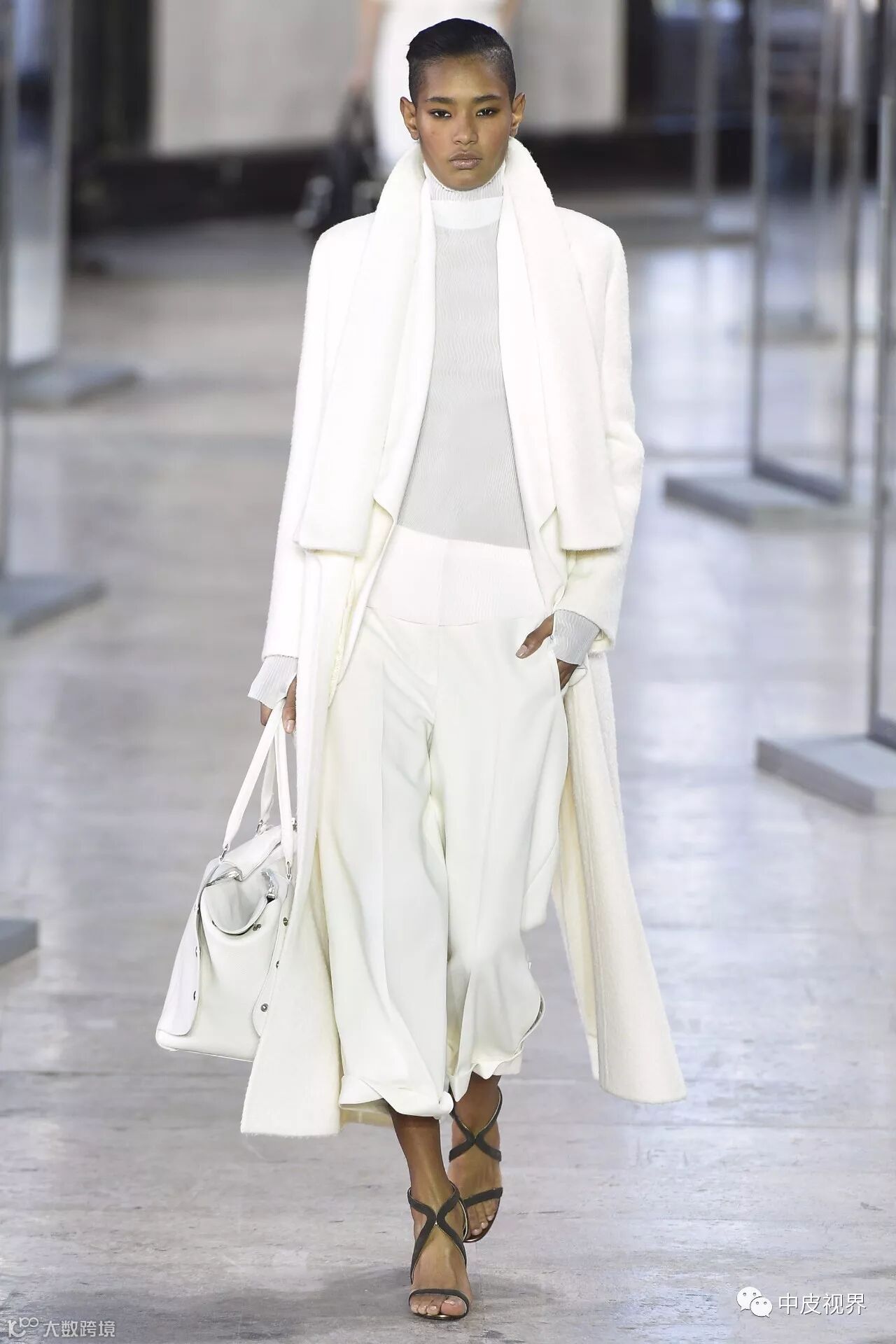 这一季的呢大衣除了款式更加轻盈之外,颜色也设计的更加清新甜美,廓形设计更显时髦,配灰色上衣和白色紧身裤,很有feeling的搭配。