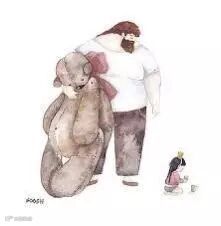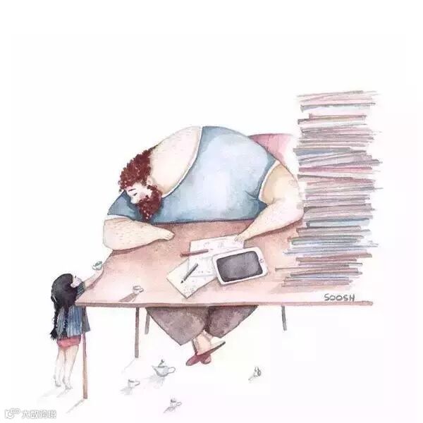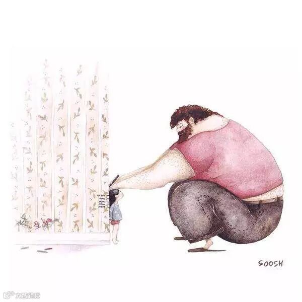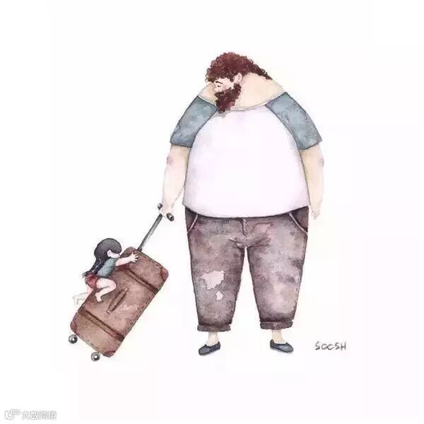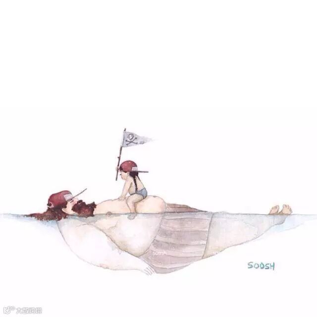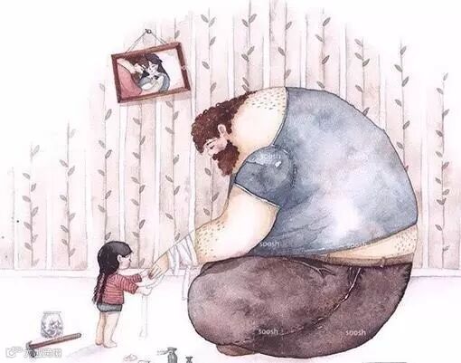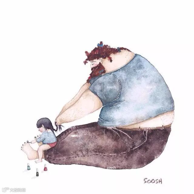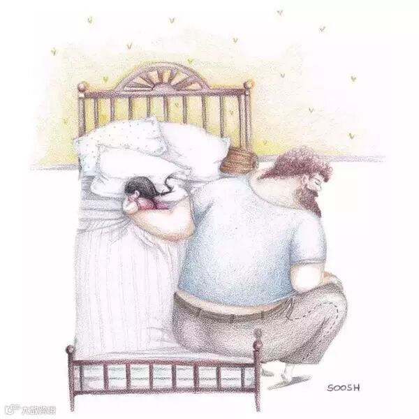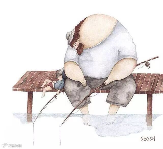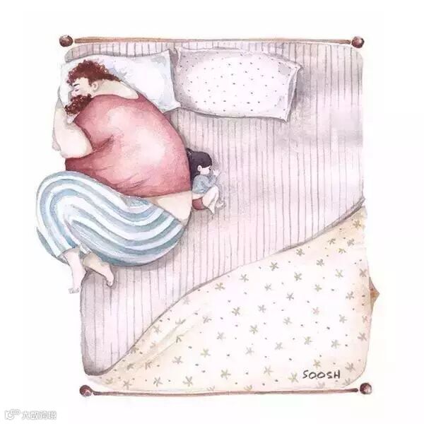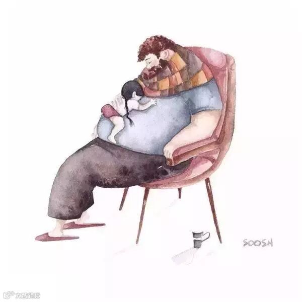 爸爸的啤酒肚就像被太阳晒过得小床一样温暖,爸爸的呼吸像摇篮一样起伏。趴在上面与爸爸一起沉沉的睡去,两人一起享受这静谧的时光。