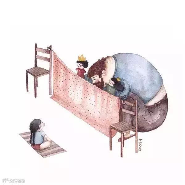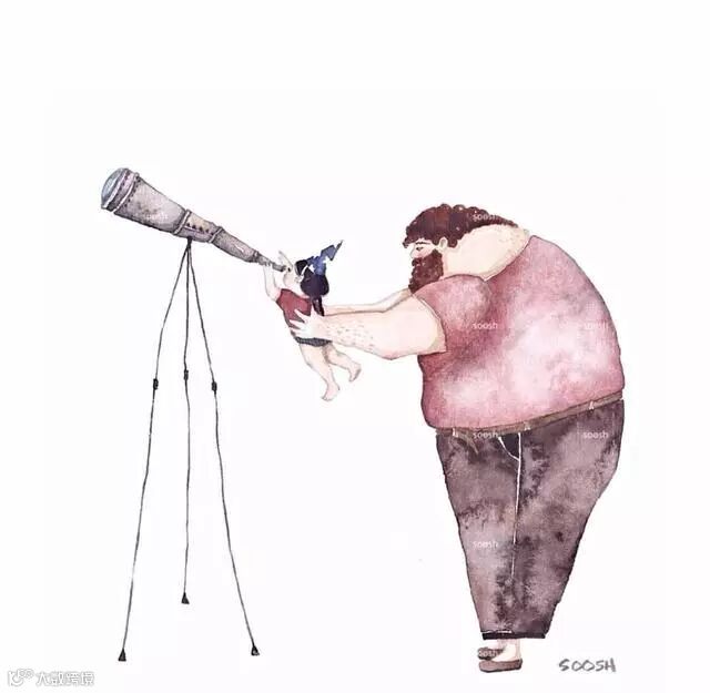 然而在漫画家Snezhana Soosh的画笔下,父亲却一改往日的形象,变身一个柔情似水的男人,细心地呵护着女儿的乐趣和对这个世界的好奇。