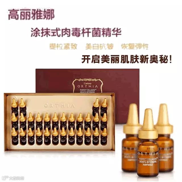 小编推荐理由:女人最怕人未老色先衰!高丽雅娜ORTHIA涂抹式肉毒杆菌28支,荣获“韩国科技奖”,连续四次获韩国CCM认证,专供韩国美容院;“天然肉毒杆菌”——EGF干细胞营养液成分,真正能用手推进皮肤肌底,激活干瘪凹陷细胞,去皱紧致;媲美注射式肉毒杆菌,28天肌肤焕颜!(28支为一个疗程)!