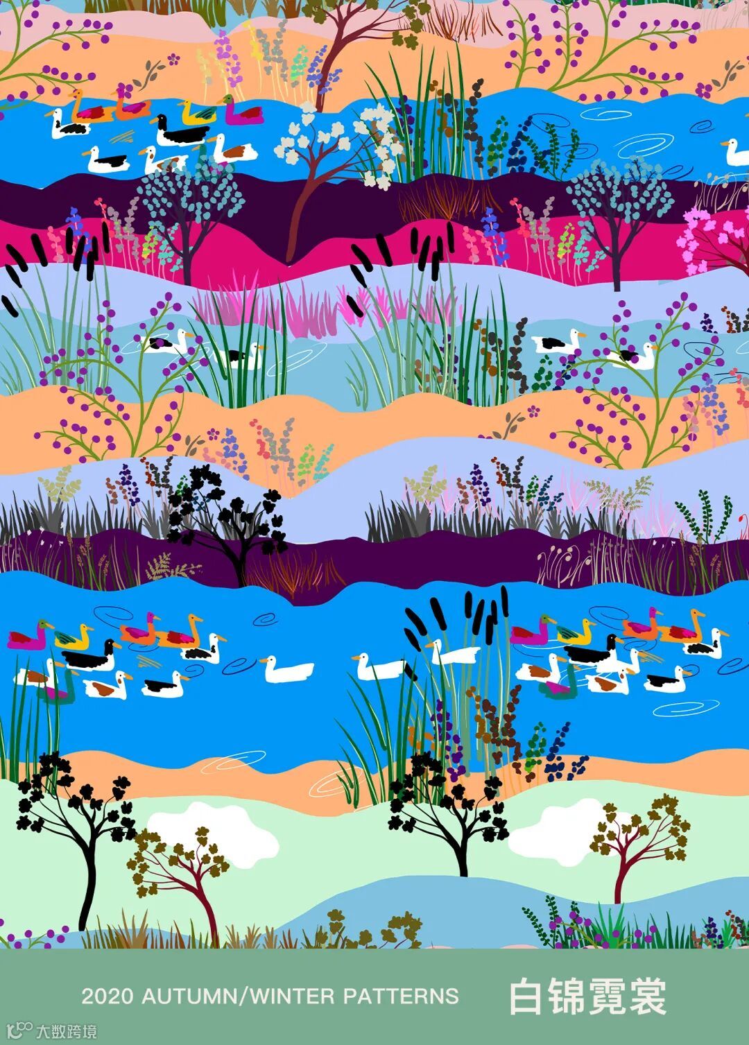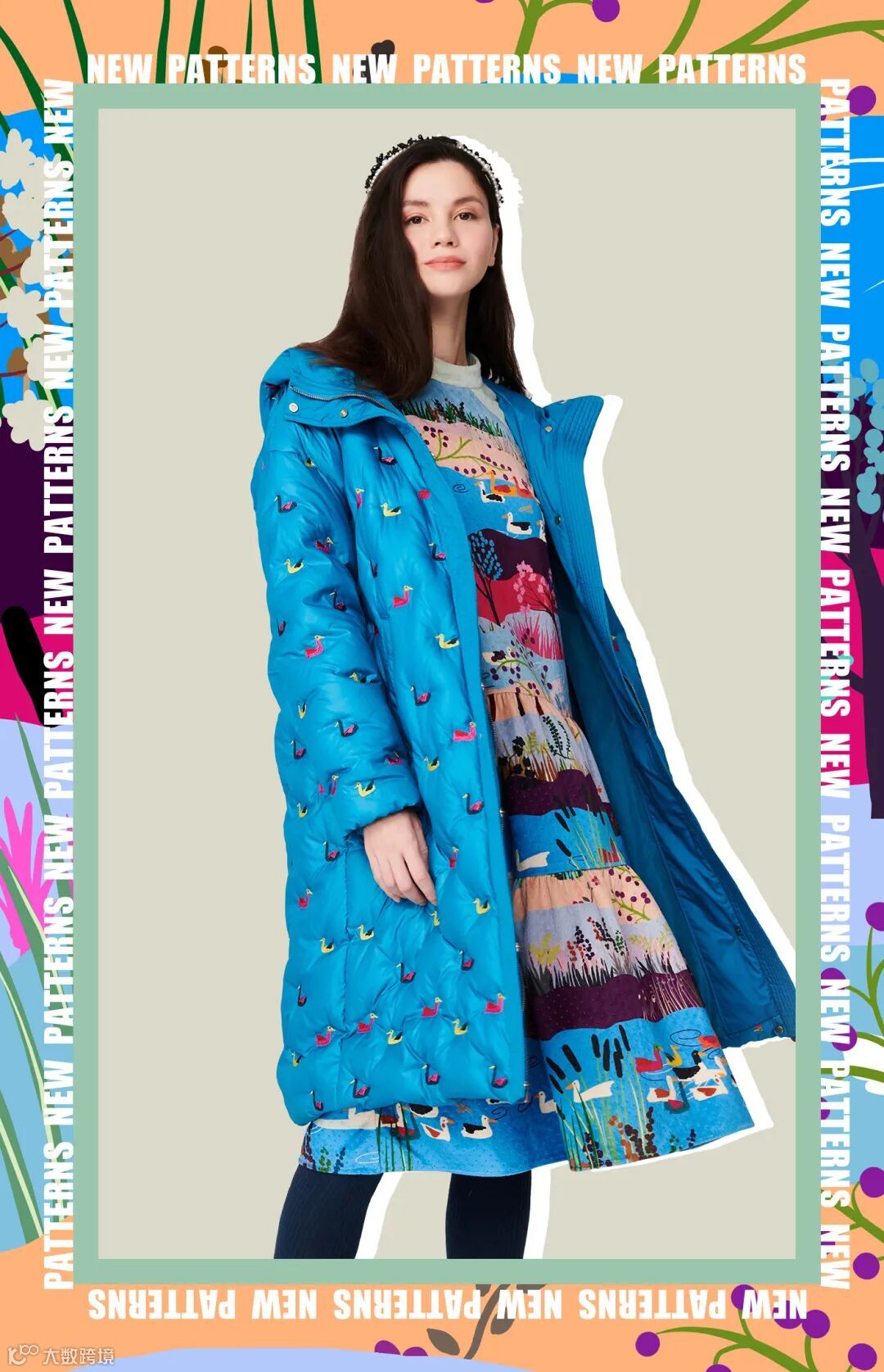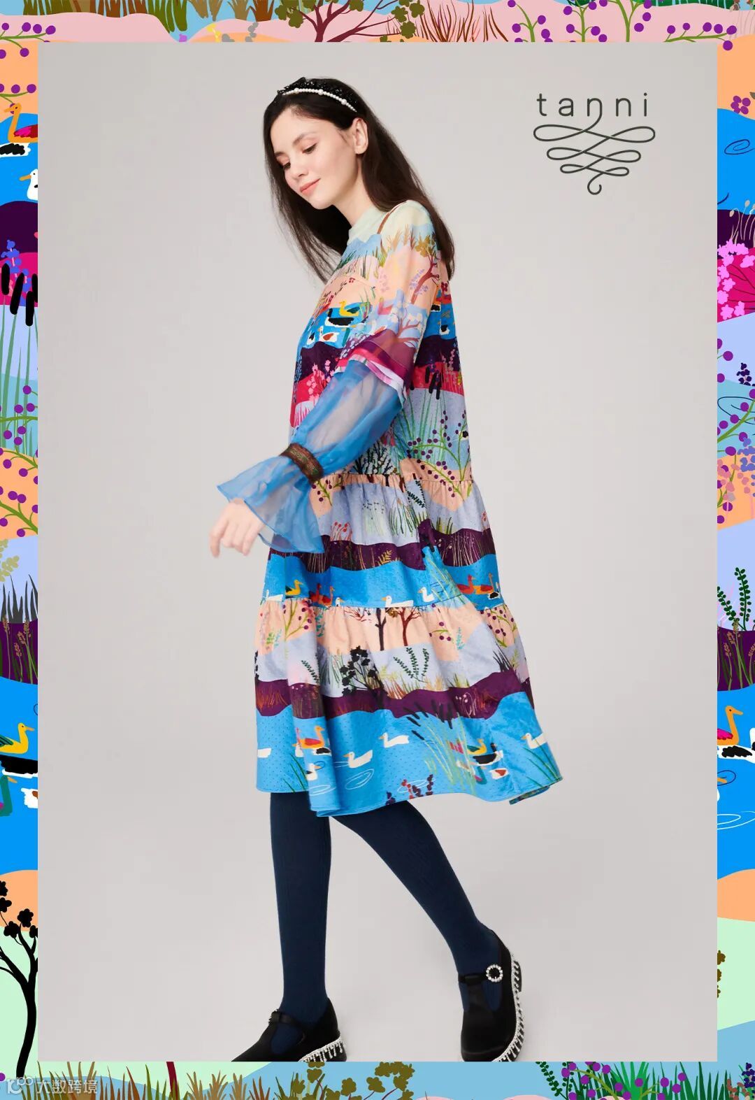 基于此种理念和社会共识,tanni 设计了白锦霓裳的花型元素。肌理感厚丝绒蛋糕裙,飘逸的网纱交织其中,优雅风情展露无疑,让你立刻变身为罗曼蒂克电影中的女主角。蓝色系象征着自由、飘逸与希望,传达出一种舒服自在、真实自我的生活理念。七彩池塘的纹理设计显得生气勃勃悠然自得,动物嬉戏水中活泼可爱,饶有童趣。