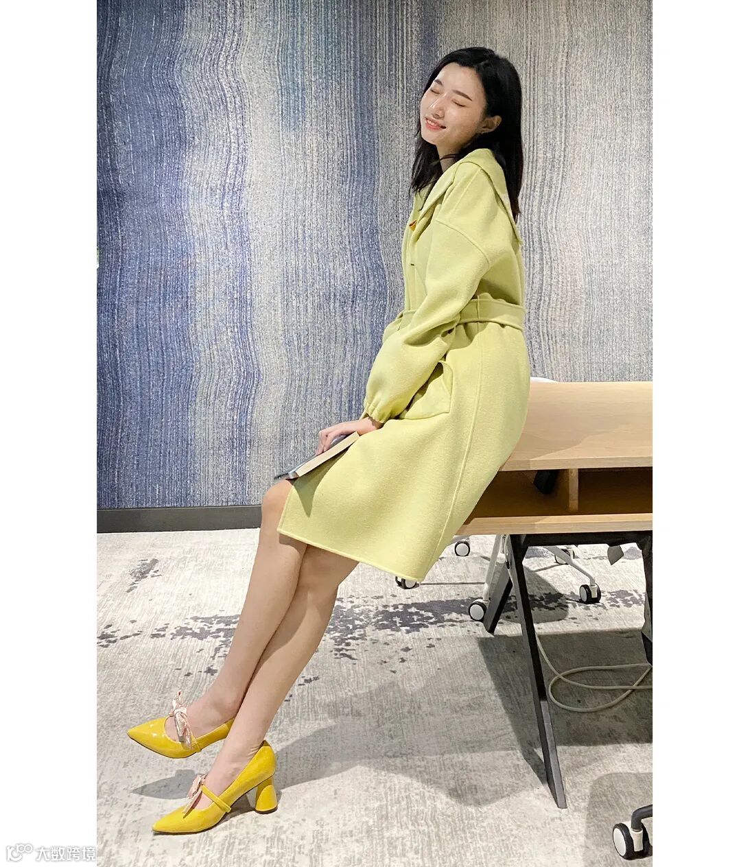 清新的牛油果绿色,有谁会不爱呢,减龄显白又不失品味,极具特色的后领针织提花织片,细节感和质感 up up!腰带的设计提升整体上身效果,淑女风的温婉气质想藏也藏不住了