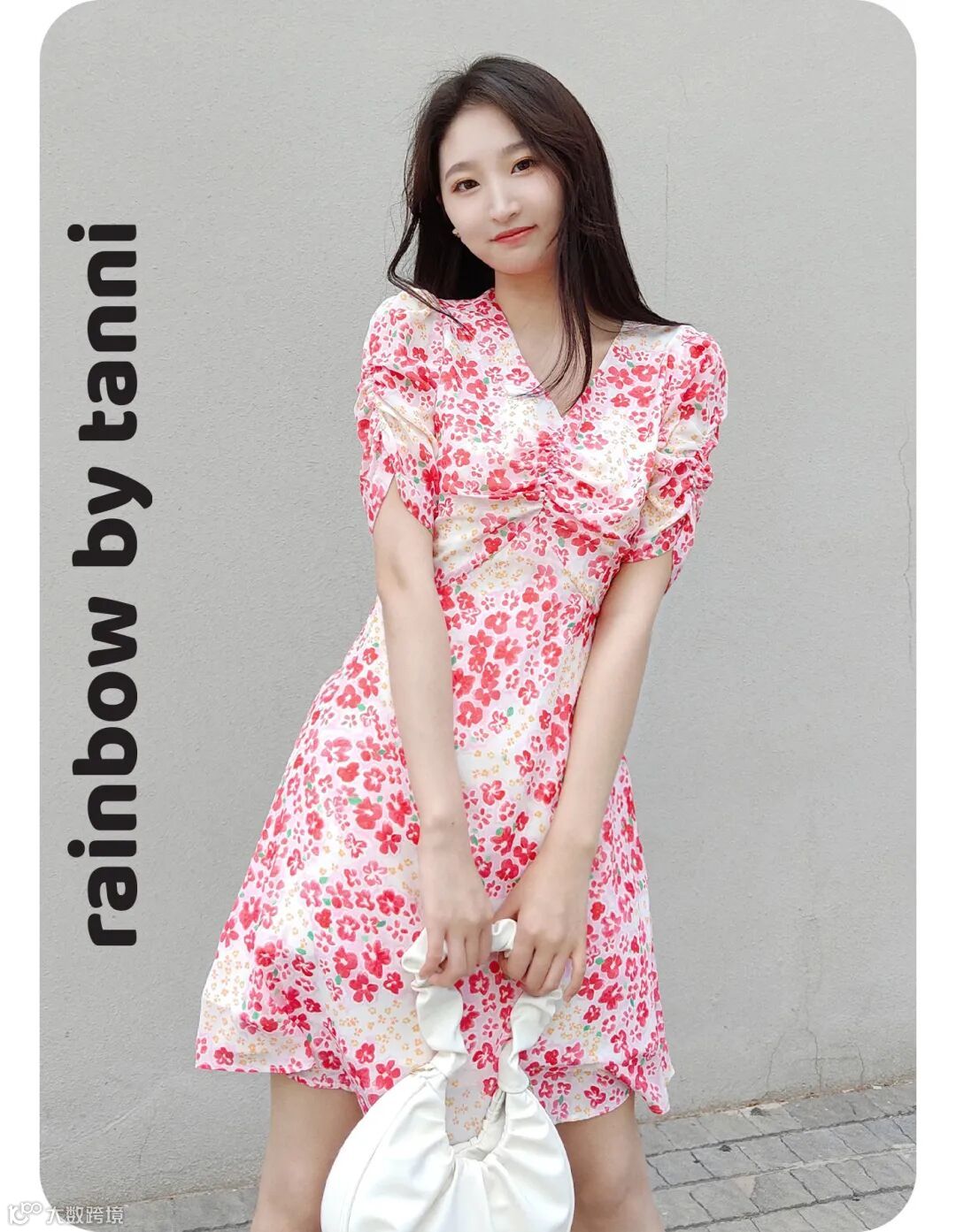rainbow by tanni:法式连衣裙粉粉嫩嫩的果冻色配上小碎花 油画感十足 温柔又优雅