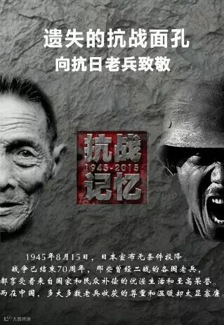 今年是世界反法西斯战争暨中国人民抗日战争胜利70周年。70年前中国人民经过八年艰苦卓绝的抗战,取得了抗日战争的伟大胜利,为世界反法西斯战争的胜利做出了巨大贡献。 历史渐行渐远,有些阴霾虽然能淡出视线,却逃不出人类的记忆。