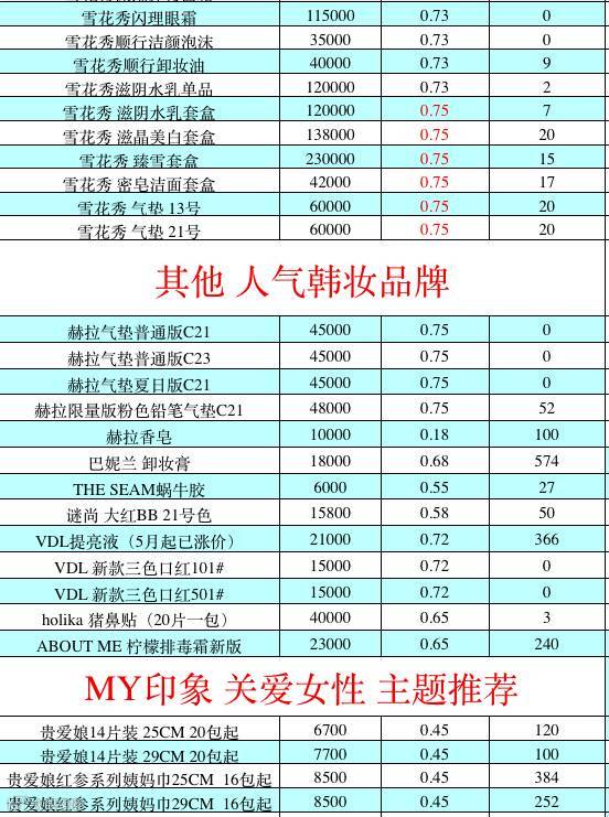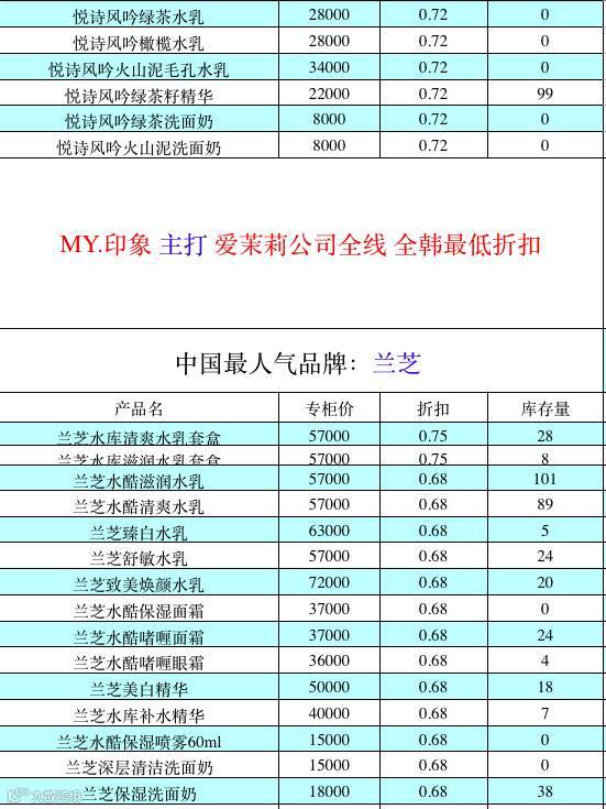 MY印象正品韩妆拥有兰芝,IOPE亦博,雪花秀,伊思,可莱丝,九朵云,马油,OHUI欧蕙和SUM37呼吸以及韩国各大爆款数百种商品,是韩国化妆品中小型代购领域最受欢迎和具有一定影响力的供货商之一。