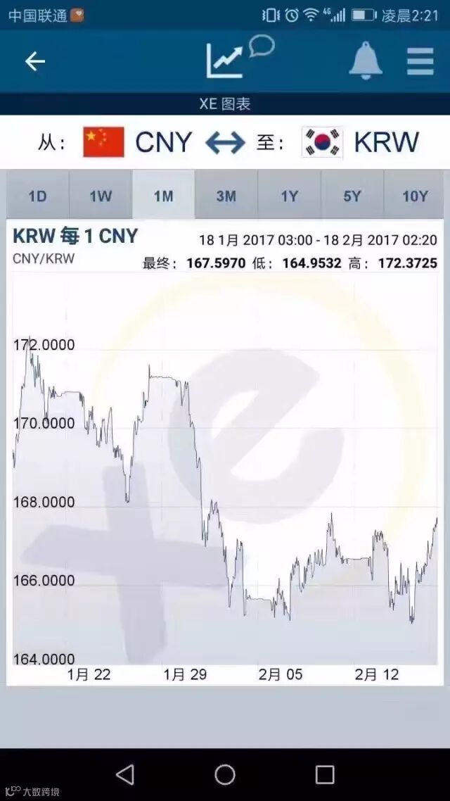 看看韩币在这一个月内的波动吧~