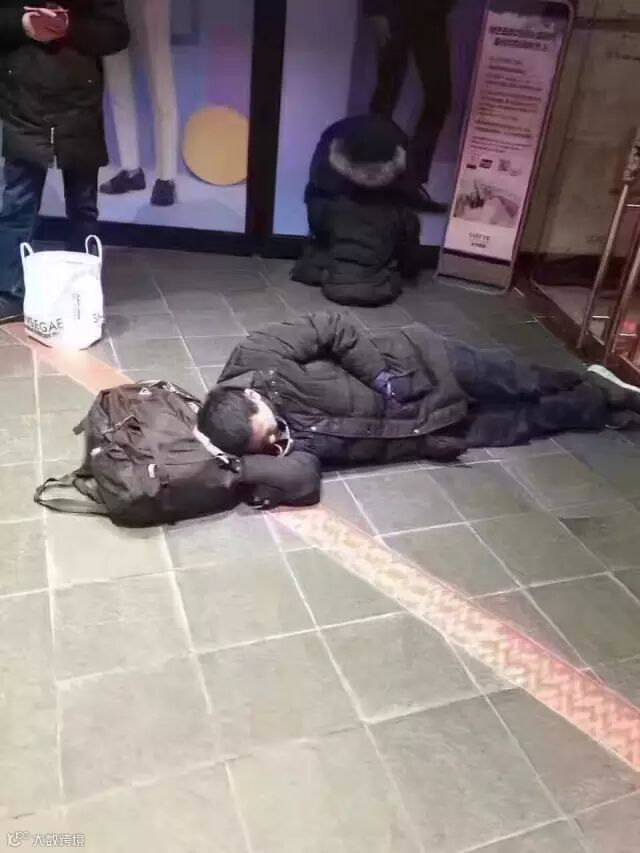 有直接睡在免税店门口的