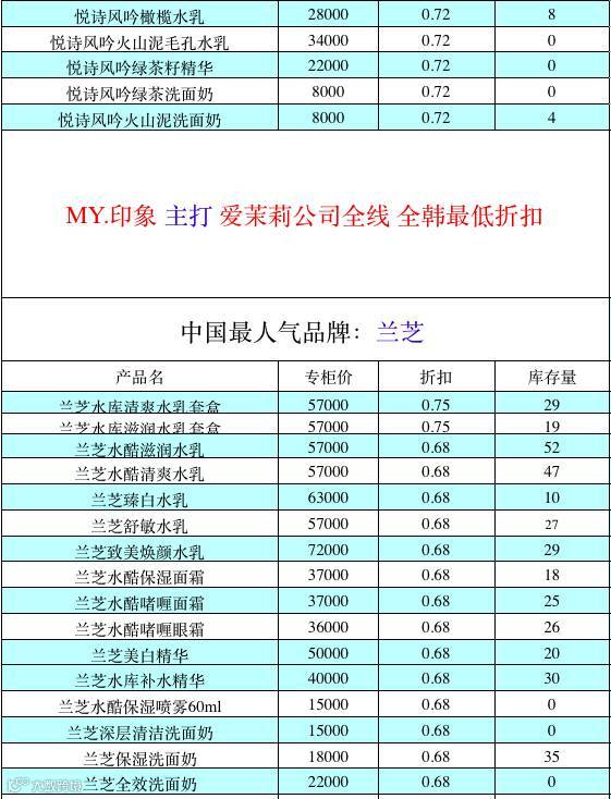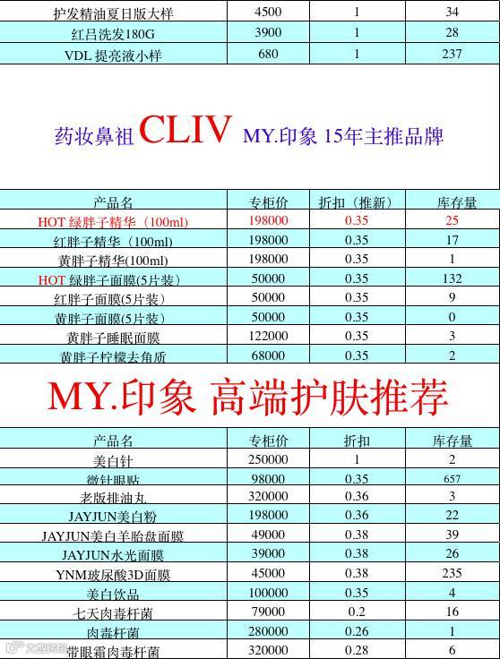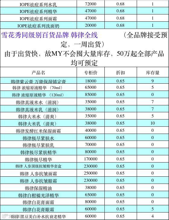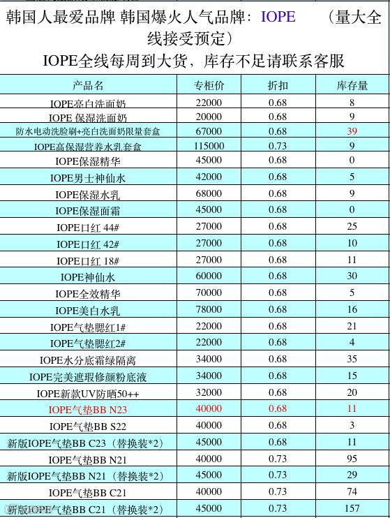 1、关注微信订阅号——myyinxiang520(my印象韩妆studio),回复数字一查看我们最新的现货折扣表。(刚关注微信不显示现货折扣表的亲,请查看历史消息,搜索便可。)