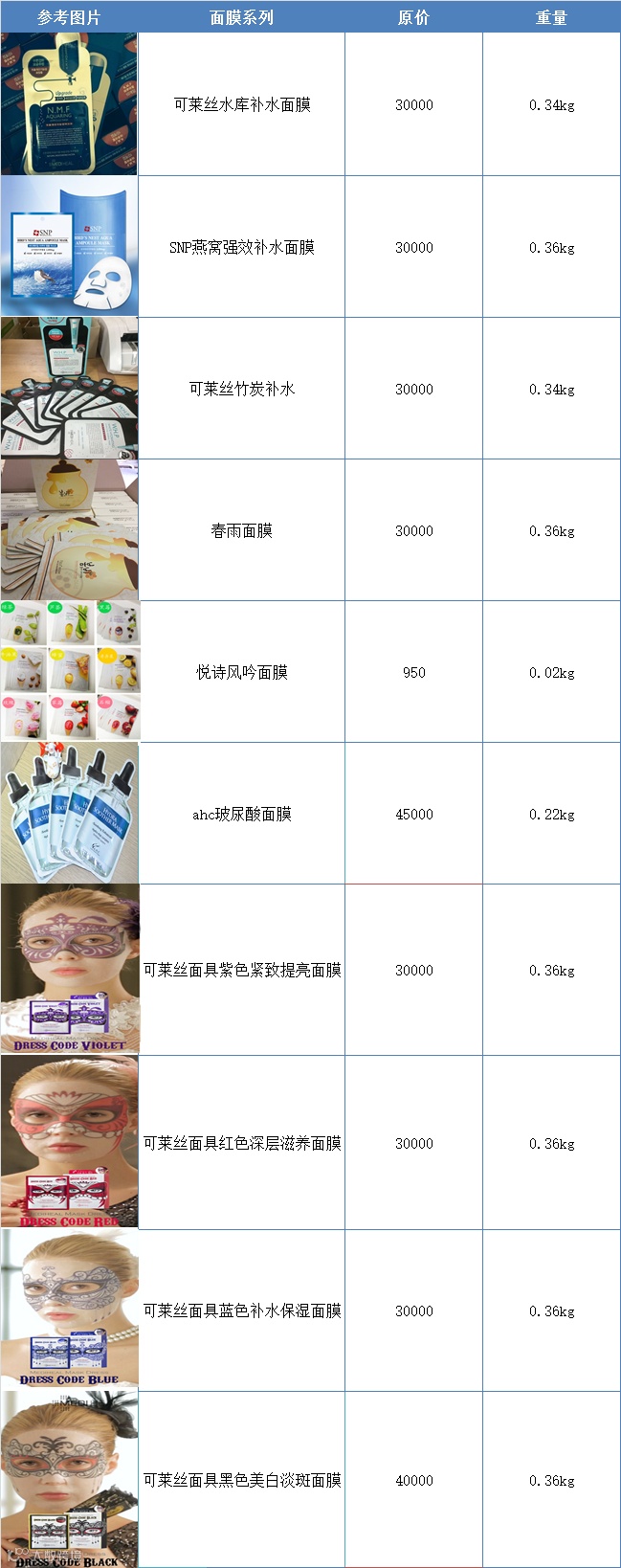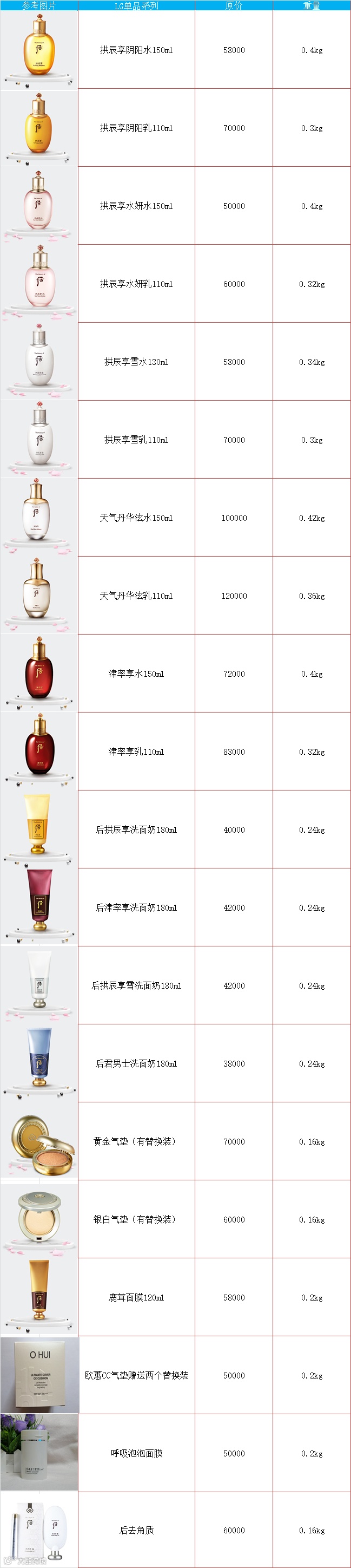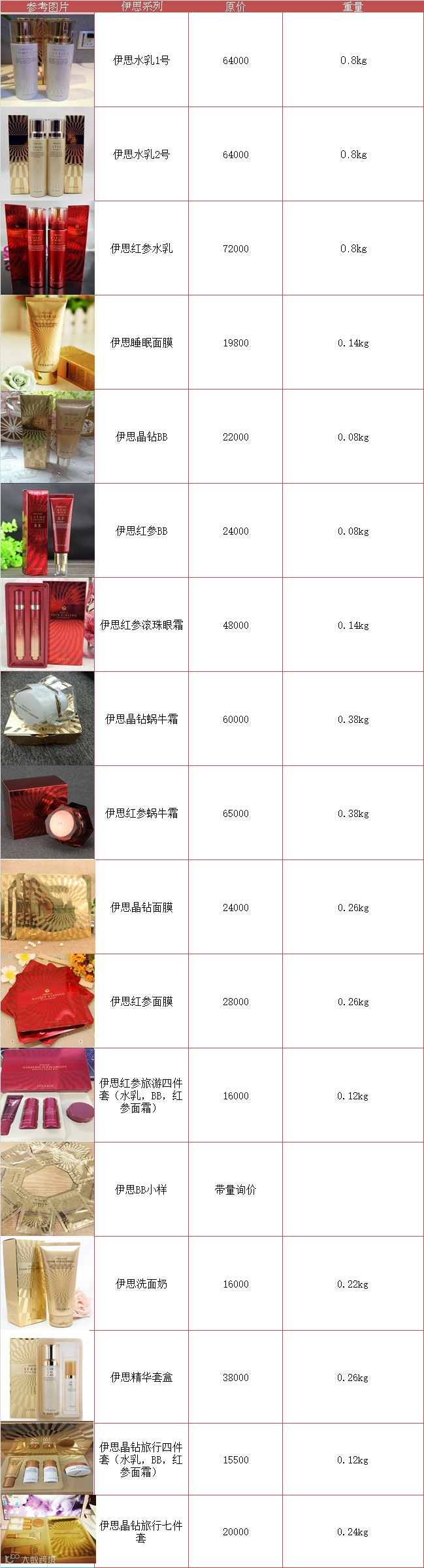 韩国化妆品各重量大全 方便各位亲控制重量哟~微商收藏版!
