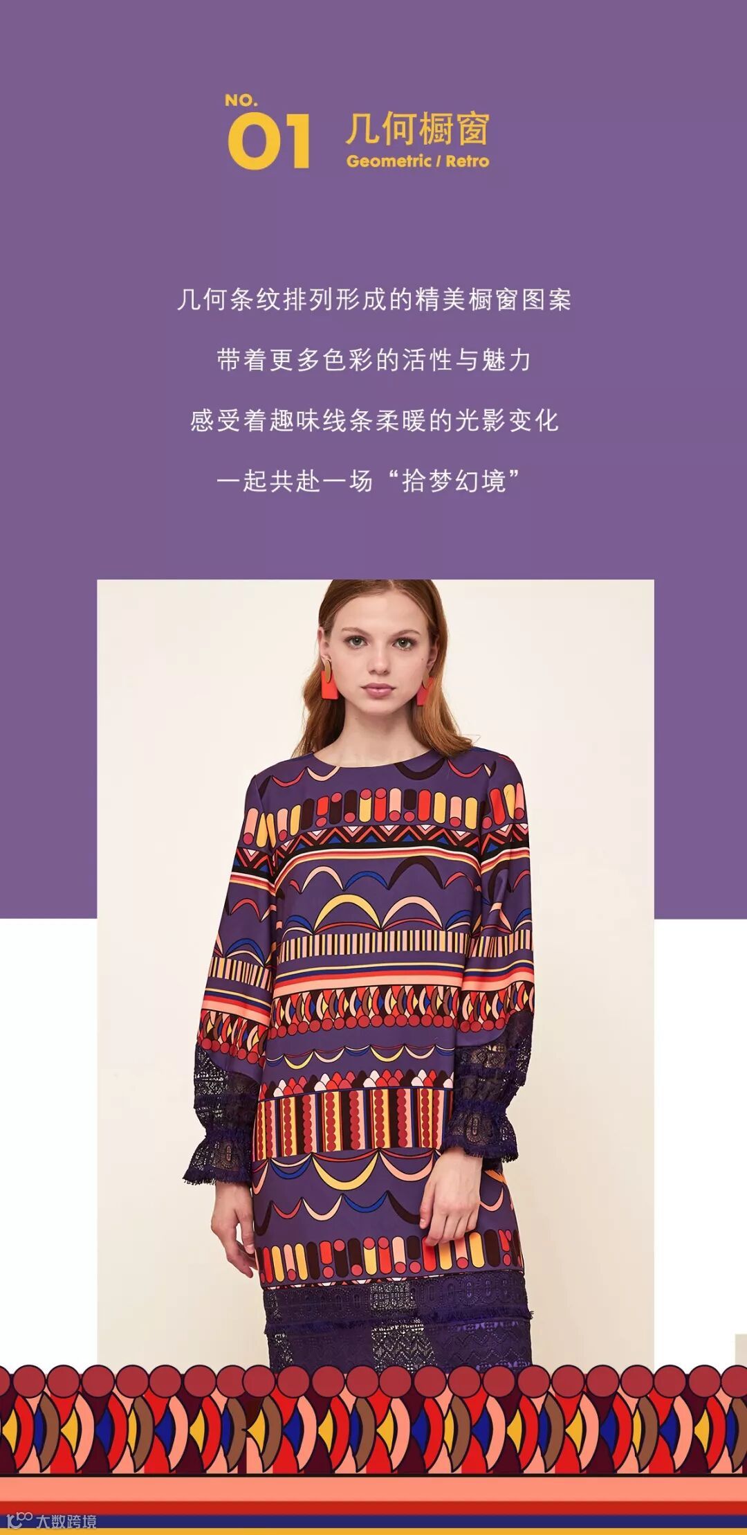 紫色系的几何橱窗印花营造浪漫的复古情调