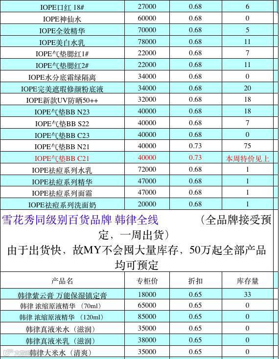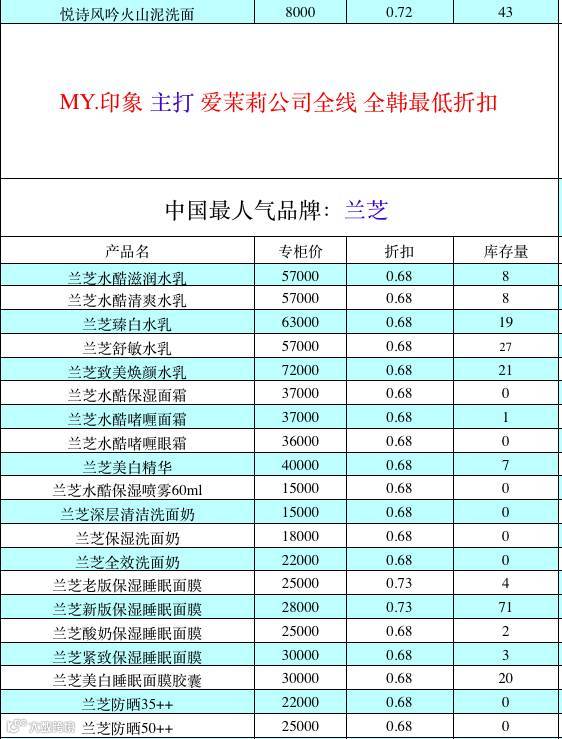 MY印象正品韩妆拥有兰芝,IOPE亦博,雪花秀,伊思,可莱丝,九朵云,马油,OHUI欧蕙和SUM37呼吸以及韩国各大爆款数百种商品,是韩国化妆品中小型代购领域最受欢迎和具有一定影响力的供货商之一。