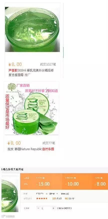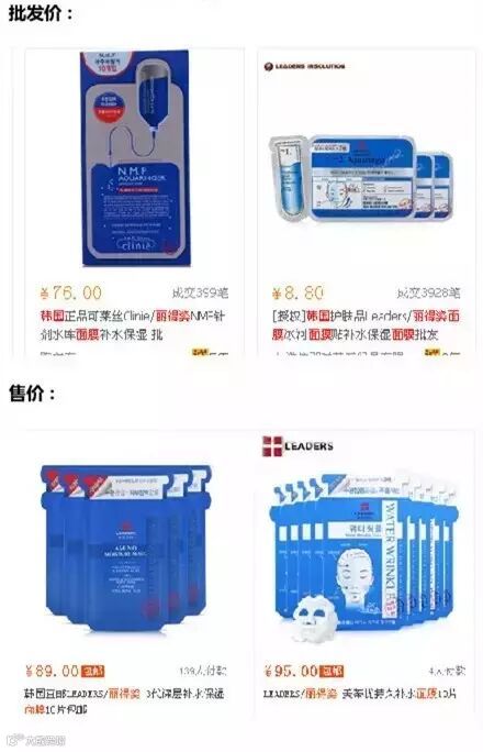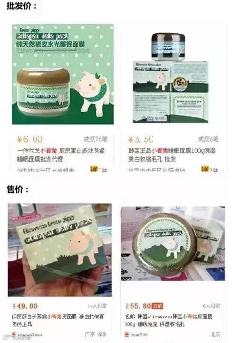我们先上某大型批发网站阿里XX搜下进货价,各位妹子可以看到最近成交1000多笔,均价都在8块左右,大部分都在广州深圳发货。某宝上那些号称韩国代购的你还敢买吗?