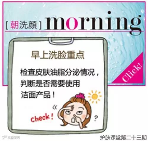 注意:早、晚洗脸的重点不同