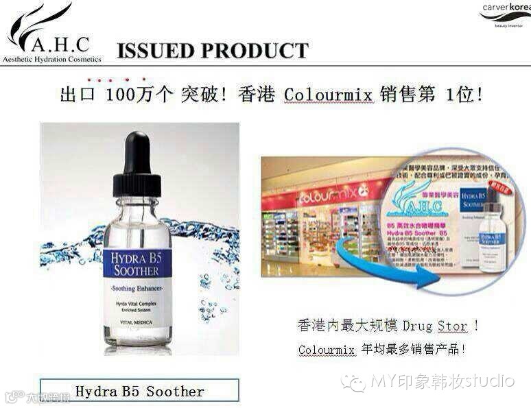 MY印象工作室AHC B5玻尿酸精华 (价格微贵)主要功能:迅速渗进表皮层,能吸取1000倍水份分子进入肌肤底层,增加其锁水能力,并补充营养要素,促进胶原蛋白合成,修护细胞并柔软粗糙肌肤,改善过敏,舒缓红痕现象,同时预防因不同情况引起肌肤之干燥,并帮助减退眼部油脂肪寄眼纹等问题,使用后肌肤注满水分,倍觉水嫩清新。