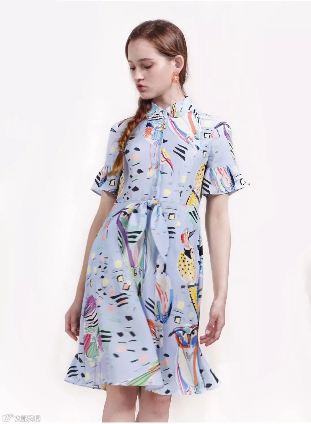 手绘的笔触与梦幻鸟语林印花尽显活泼