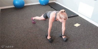 保持直臂平板支撑动作,然后再用哑铃上拉,可以更好地训练你的上肢力量和全身的稳定性。
