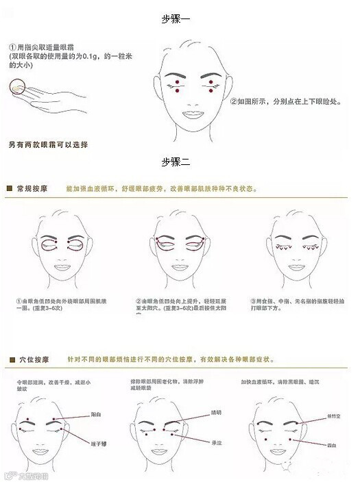 正确使用眼霜的方法步骤: