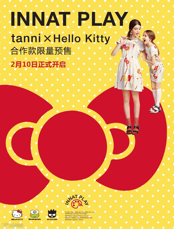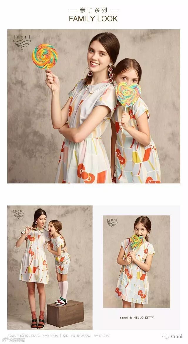 经典形象 Hello Kitty 客串到 tanni 花型中,变得愈加可爱有趣!可以把可爱的小家伙如愿以偿得穿上身了。更有 Hello Kitty × tanni 亲子装新鲜上市,和宝宝一起美美地迎接新年过后的每一天吧。