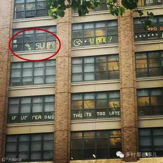 他在自己工作的6楼窗户上贴了一个“HI”,好吧...真的只是为了打发一下时间而已......