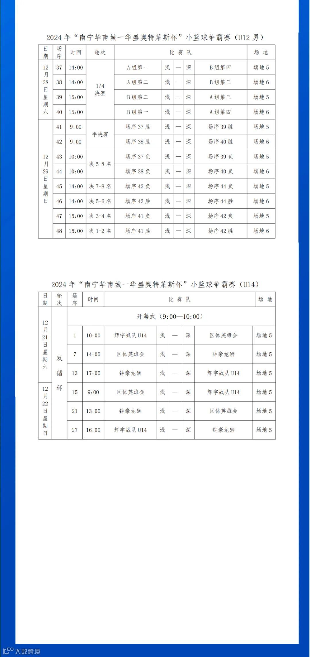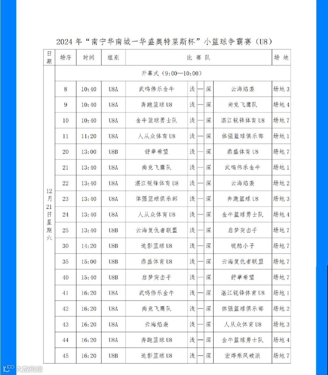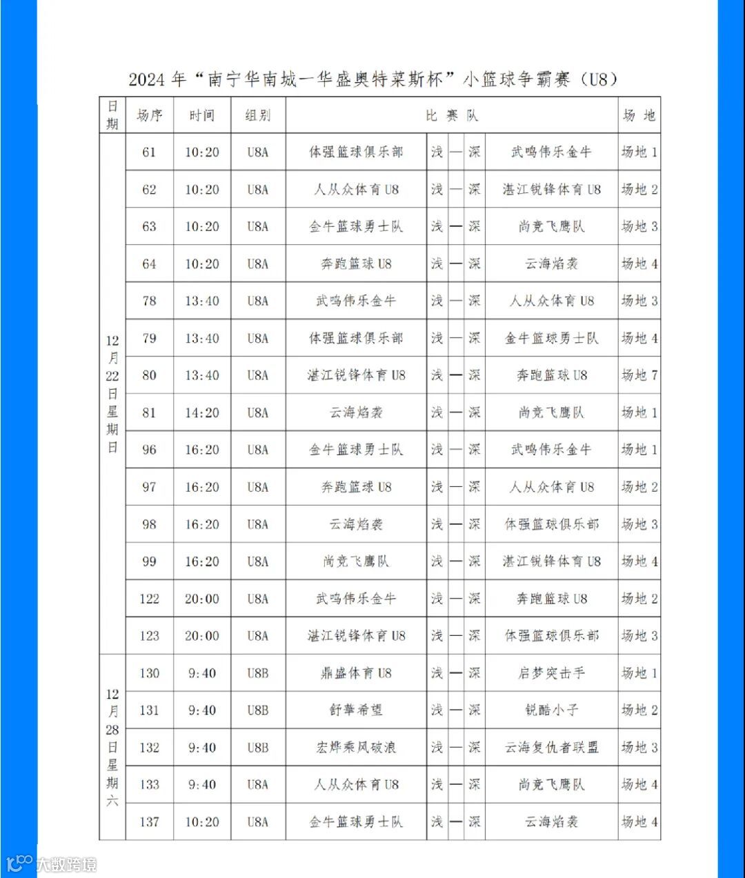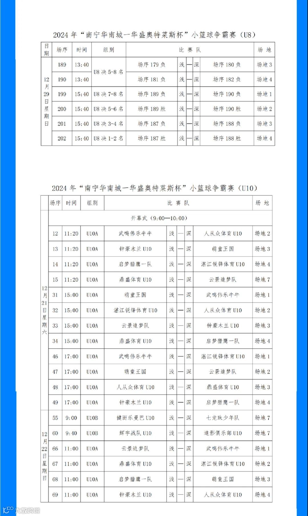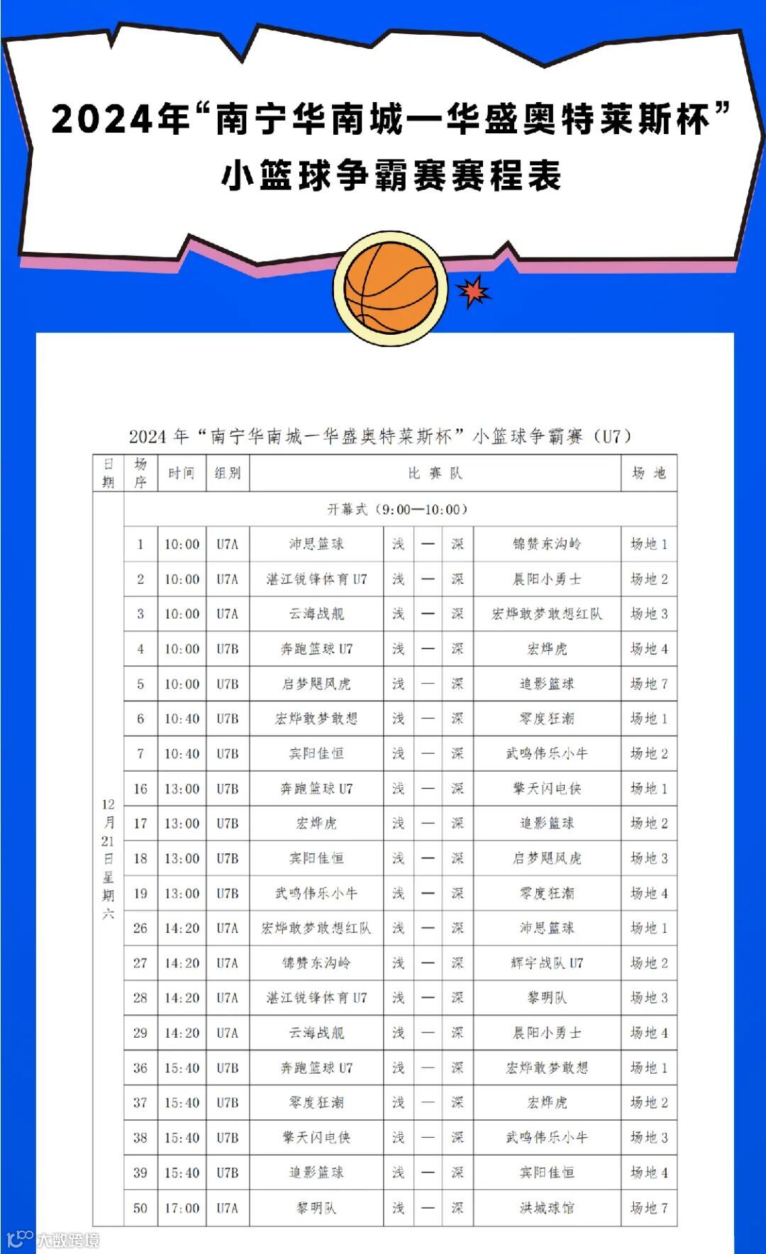 2024年“南宁华南城—华盛奥特莱斯杯”小篮球争霸赛赛程表