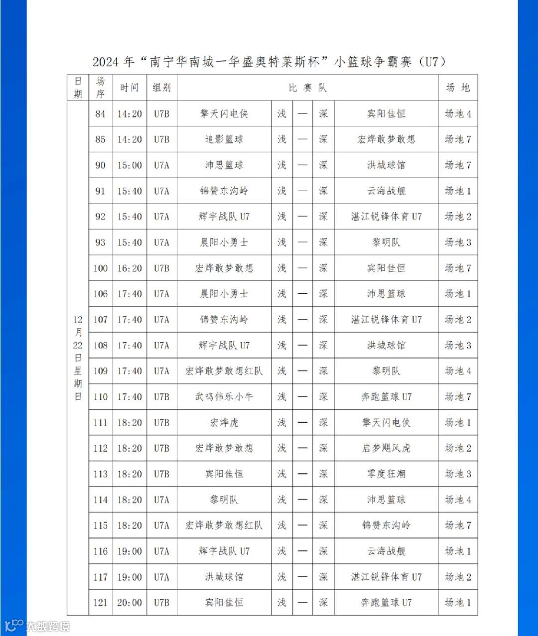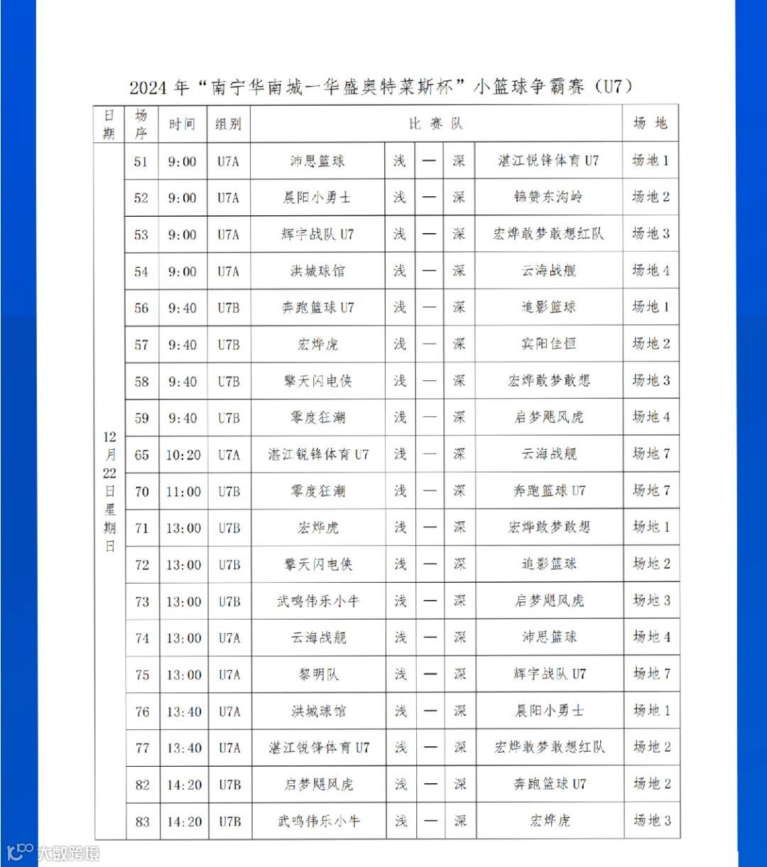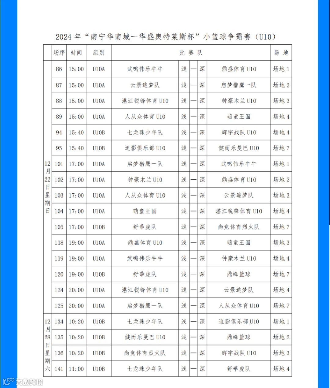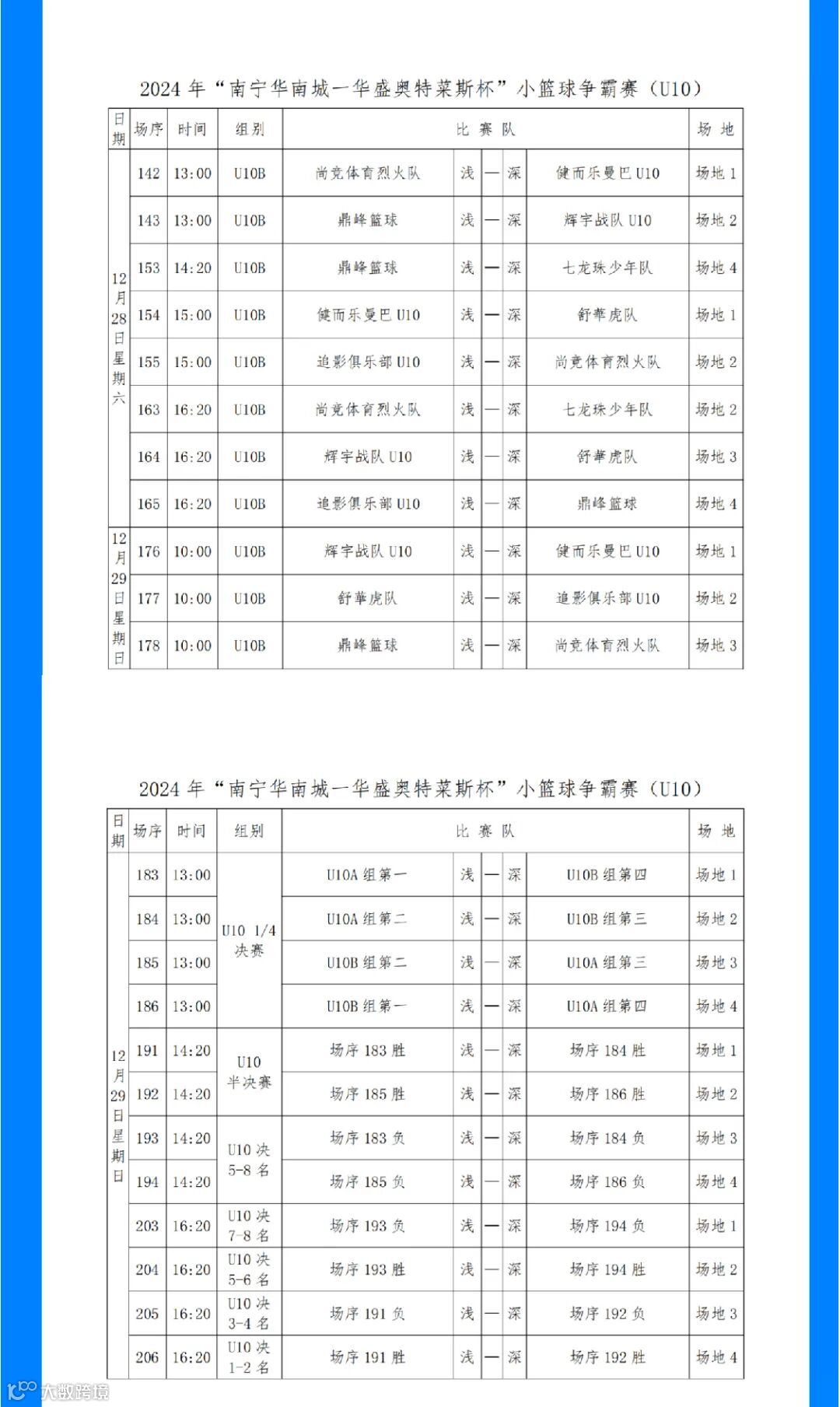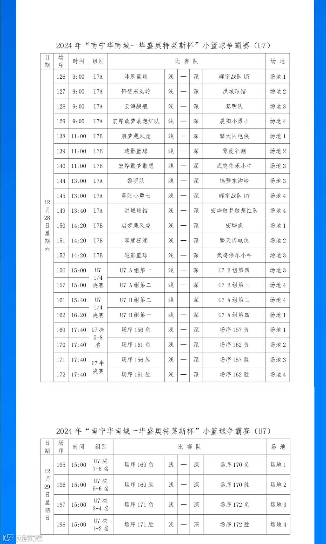 2024年“南宁华南城—华盛奥特莱斯杯”小篮球争霸赛赛程表