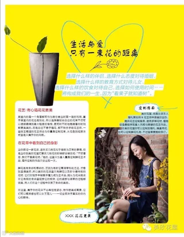 其实我最开始是做“宴会设计师”的。从2008年,我从事设计的工作,于2013年成立了花艺品牌“美欣花屋”。