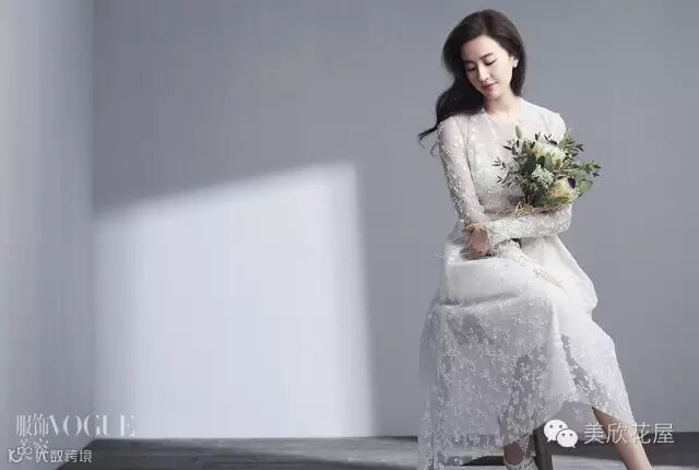 【与《Vogue 服饰与美容》合作刘亦菲拿着美欣设计的手捧花】